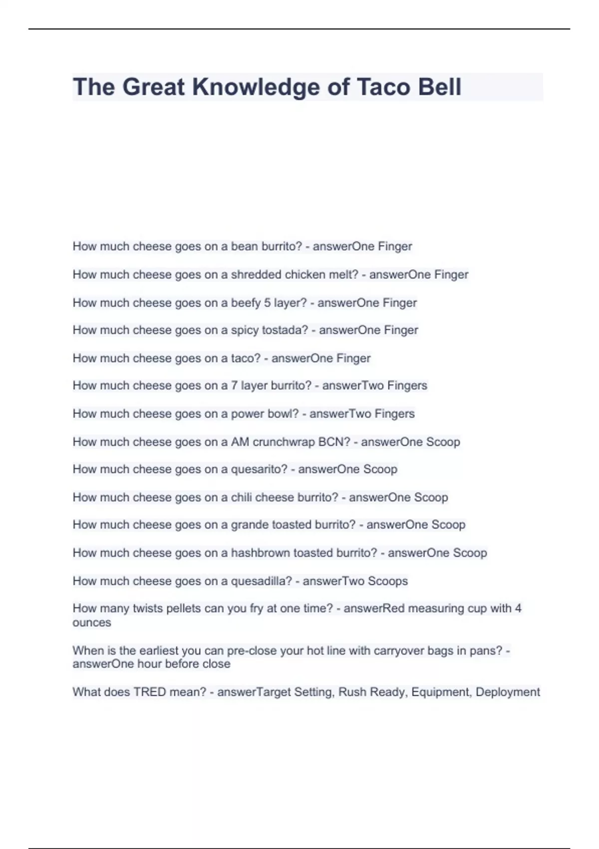 A BUNDLE SET OF TACO BELL EXAMS 2023 WITH QUESTIONS AND ANSWERS