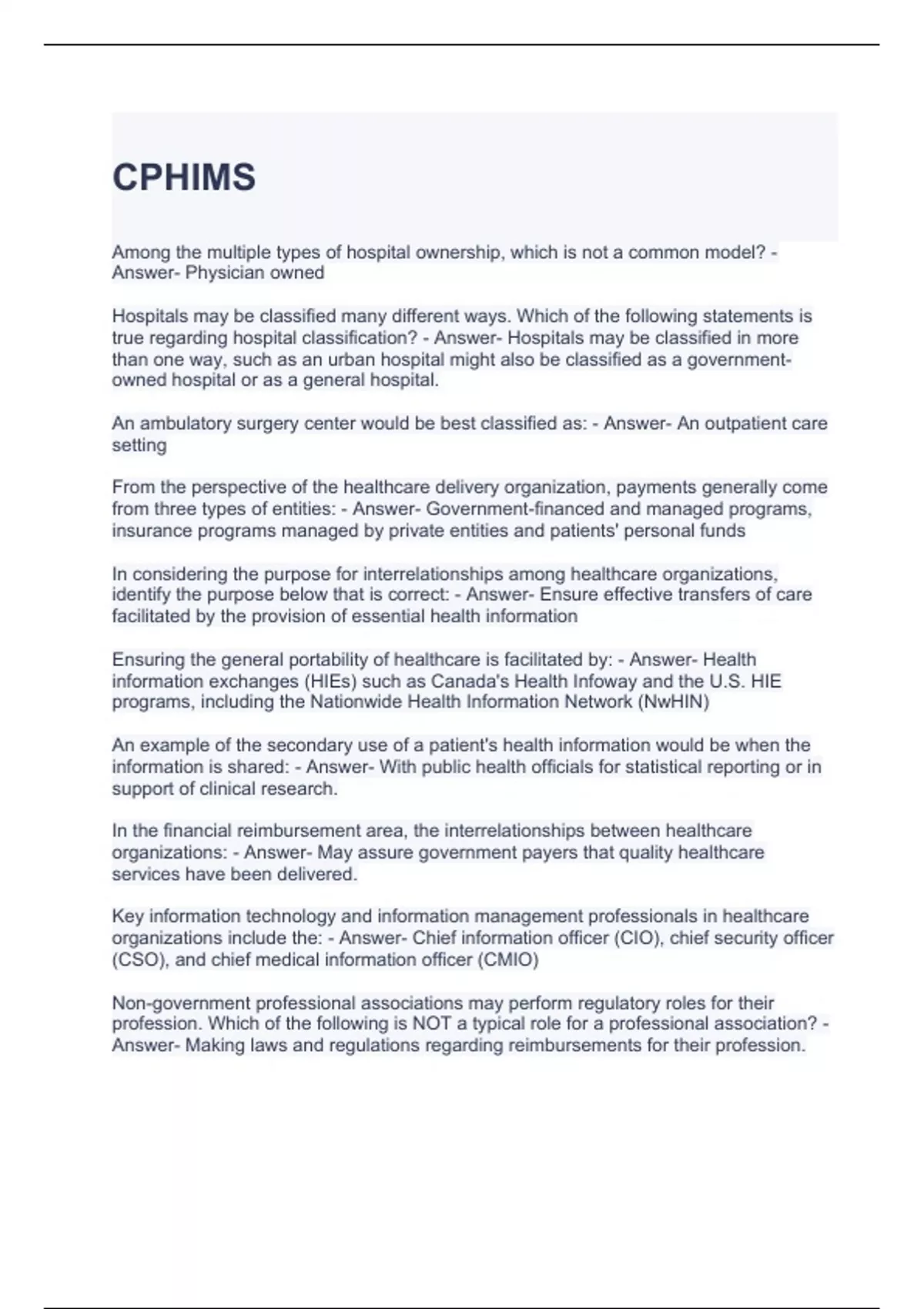 CPHIMS Exam Questions with 100% correct Answers 2 Exam (elaborations) CPHIMS Study Guide with complete solutions /Graded A 3 Exam (elaborations) CPHIMS Study Guide latest updated 4 Exam (elaborations) CPHIMS Study Cards Exam Questions and Answers Graded A 5 Exam (elaborations) CPHIMS Exam with complete solutions 6 Exam (elaborations) CPHIMS Ex
