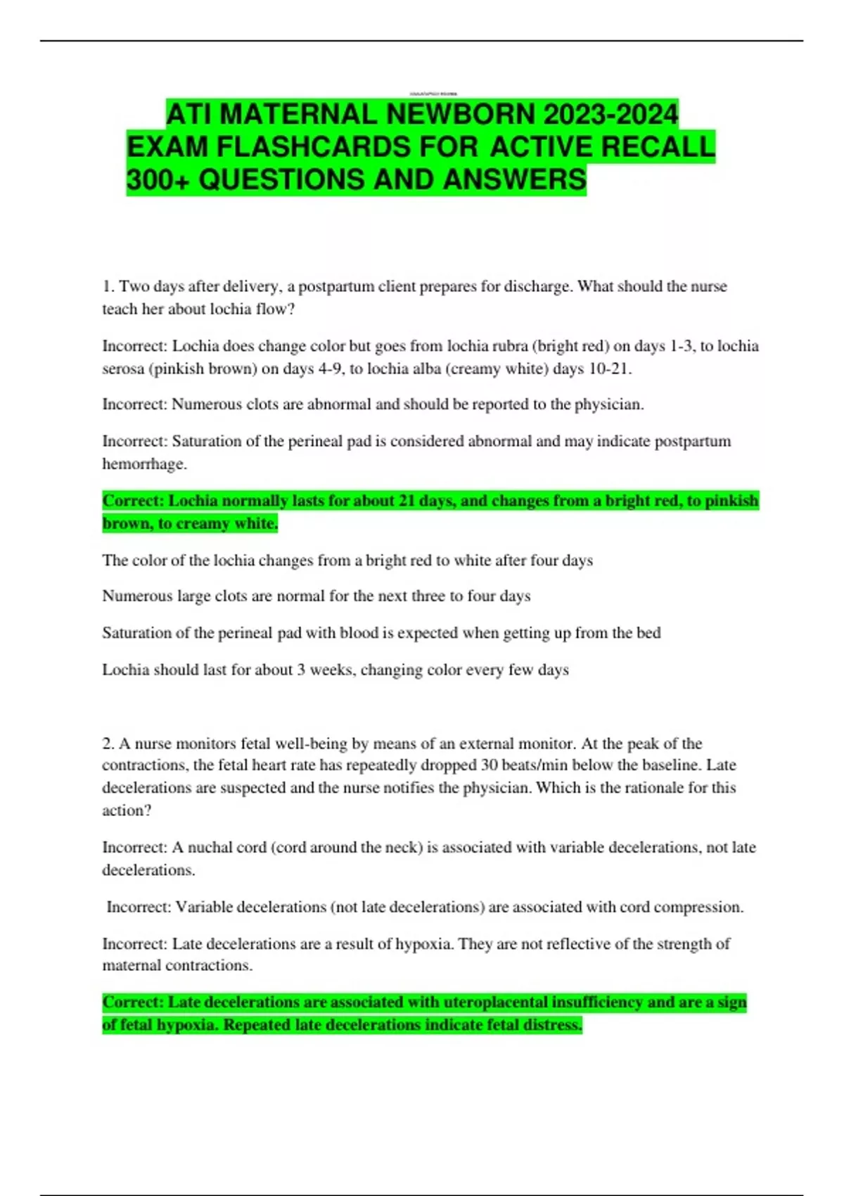 ATI MATERNAL NEWBORN QUESTIONS AND ANSWERS WITH NGN 2 Exam (elaborations) ATI MATERNAL NEWBORN PROCTORED EXAM REVIEW Questions & Answers Study Guide A Grade 100% SOLVED 3 Exam (elaborations) ATI Maternal Newborn Proctored 2023 Exam 4 Exam (elaborations) ATI MATERNAL NEWBORN PROCTORED EXAM REVIEW Questions & Answers Study Guid
