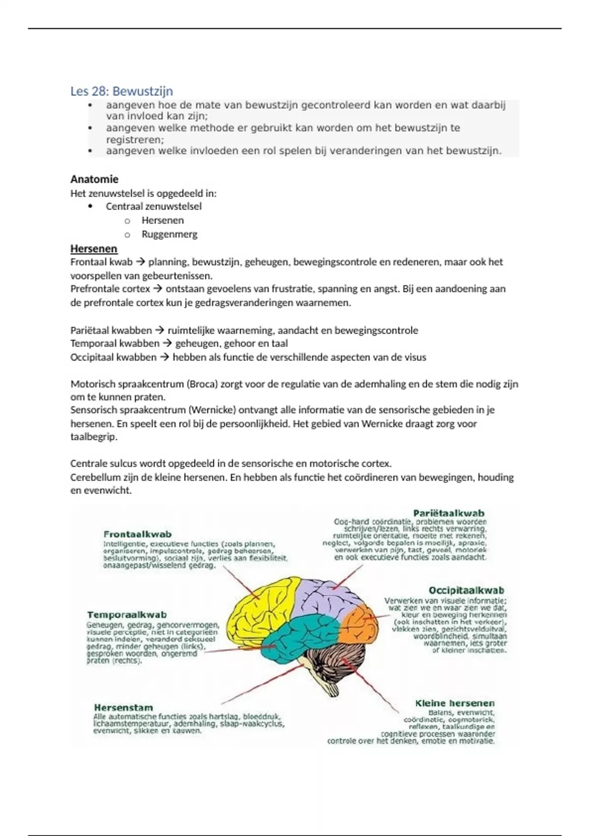 Samenvatting Les 28 Bewustzijn