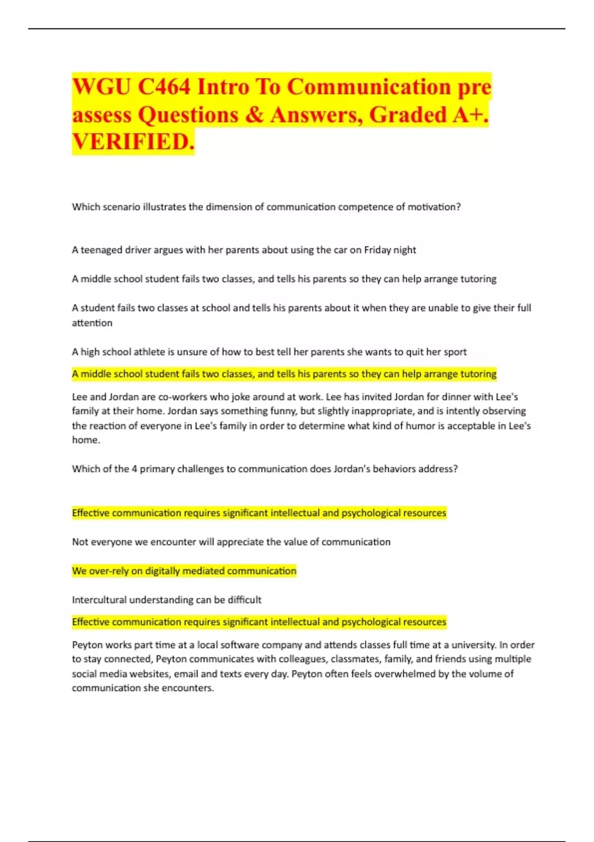 WGU C464 intro to communication unit 2, Questions and answers, VERIFIED. Graded A+