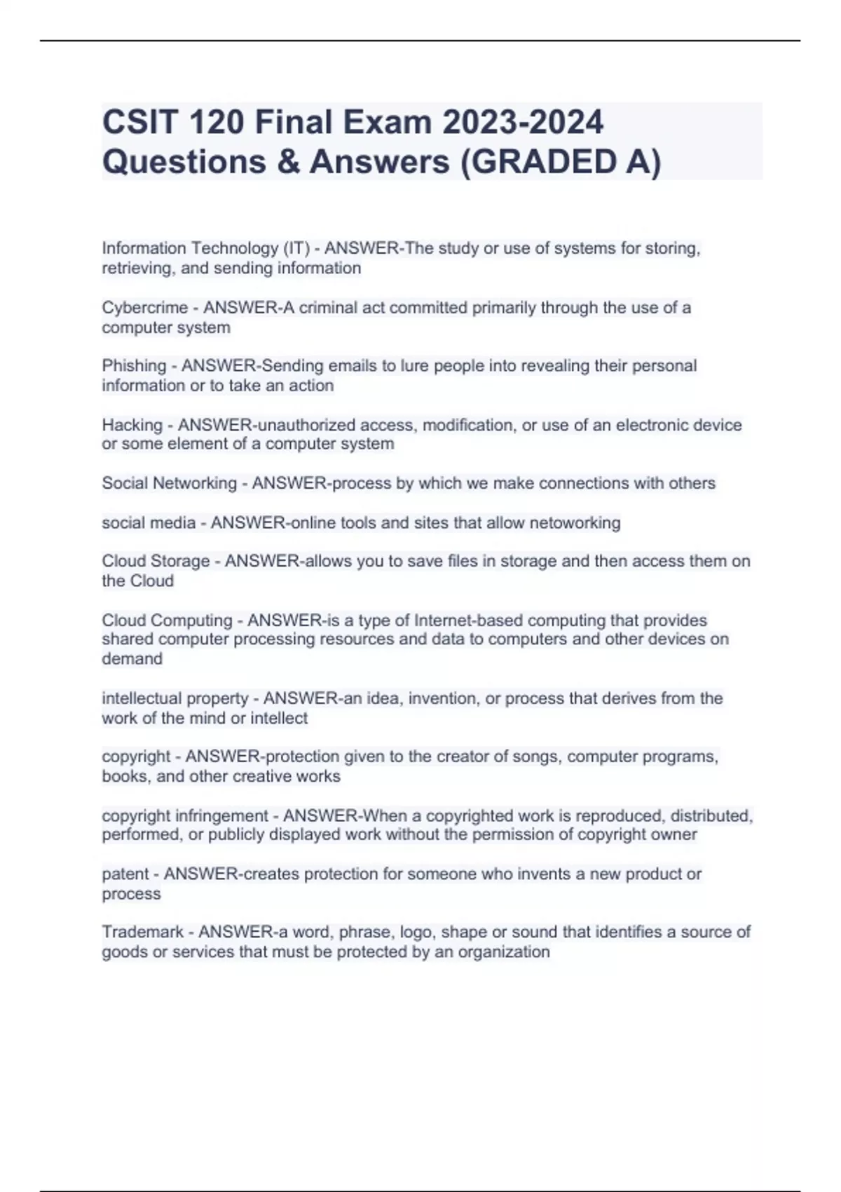 CSIT Final Exam Review Questions &Answers 100% Correct