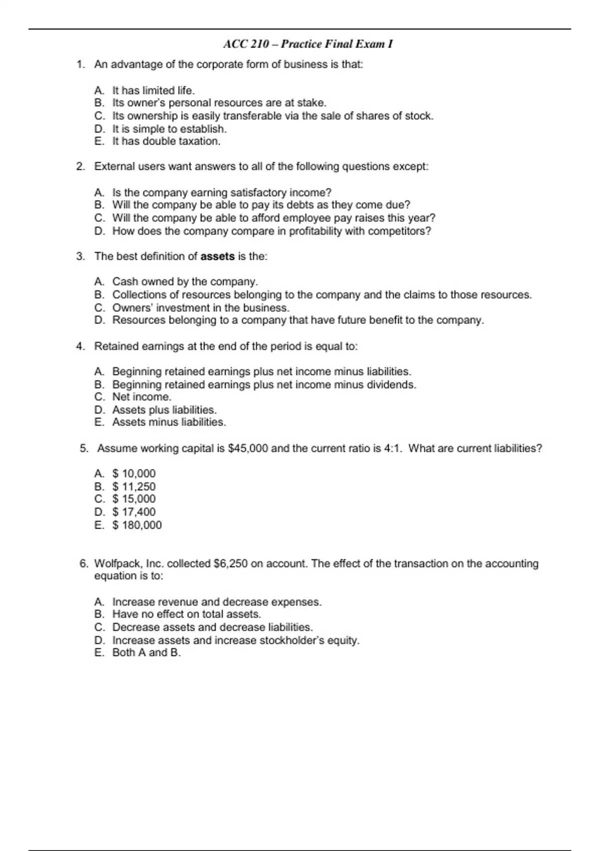 ACC 210 – Practice Final Exam Questions and Answers 2024