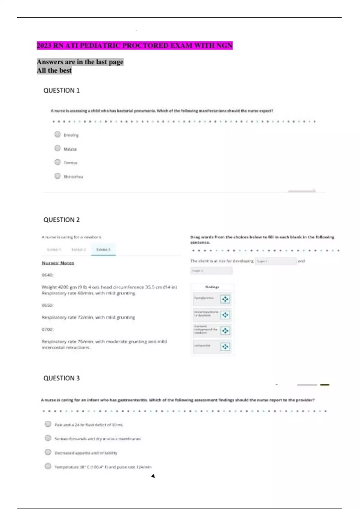 2023 RN ATI MENTAL PROCTORED EXAM WITH NGN 2 Exam (elaborations) 2023 RN LEADERSHIP PROCTORED EXAM WITH NGN 3 Exam (elaborations) 2023 RN ATI PEDIATRIC PROCTORED EXAM WITH NGN 4 Exam (elaborations) 2023 RN ATI NUTRITION PROCTORED EXAM WITH NGN 5 Exam (elaborations) 2023 RN ATI MATERNAL HEALTH PROCTORED EXAM WITH NGN 6 Exam (elaborations) 2023