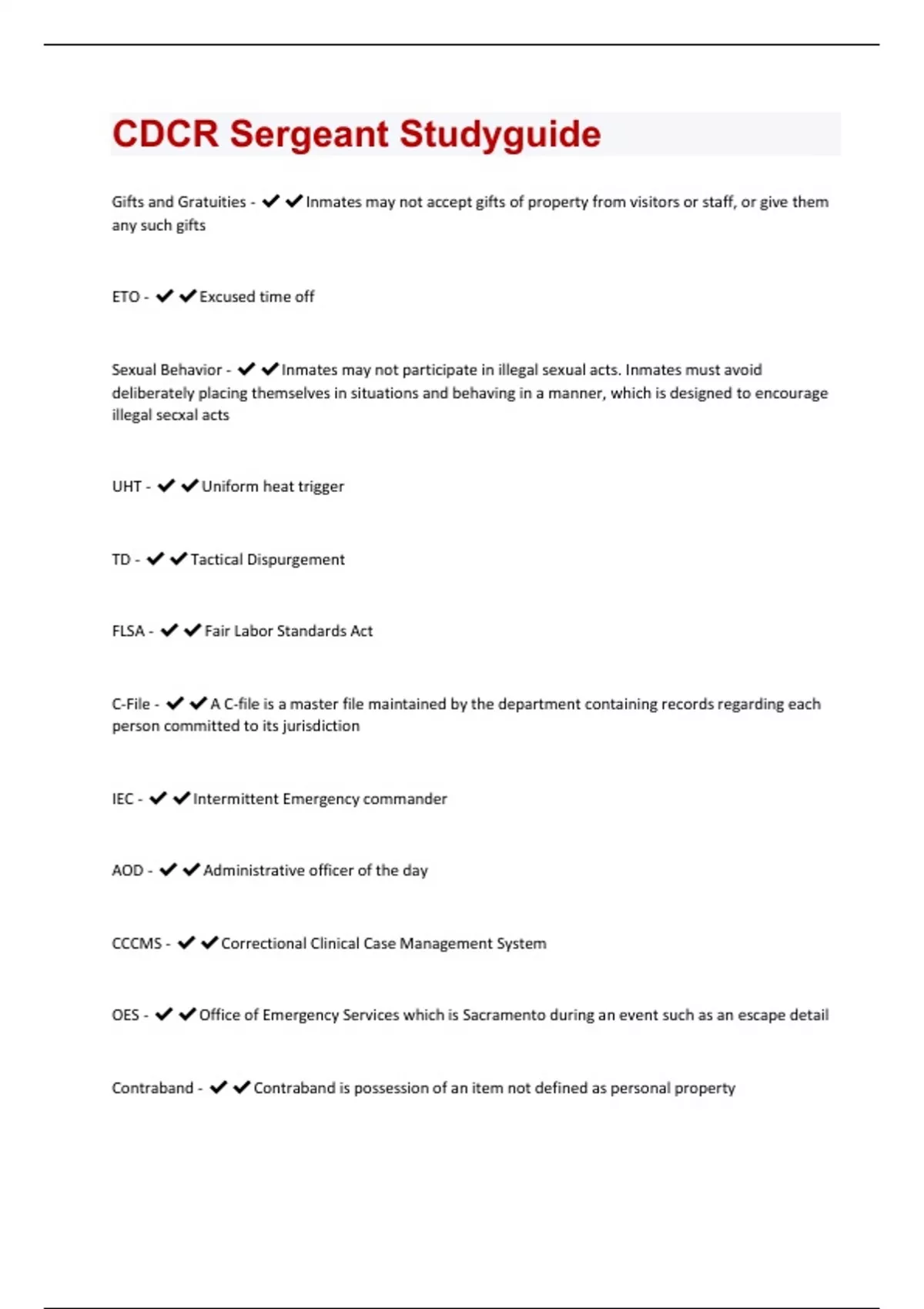 CDCR Sergeant Studyguide Rated 100% Correct!!