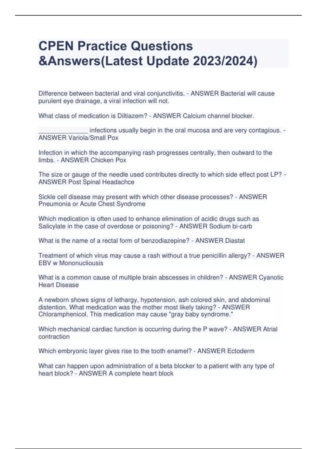 CPEN Practice Questions &Answers(Latest Update 2023/2024)