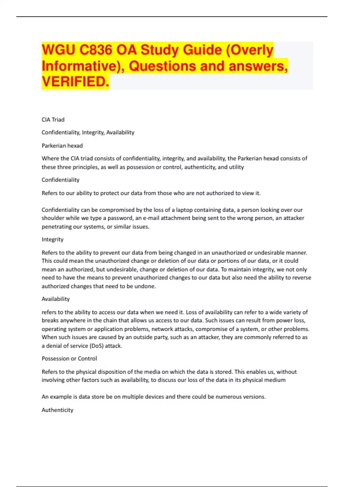WGU Course C836 - Fundamentals of Information Security, EXAMS BUNDLE, VERIFIED.