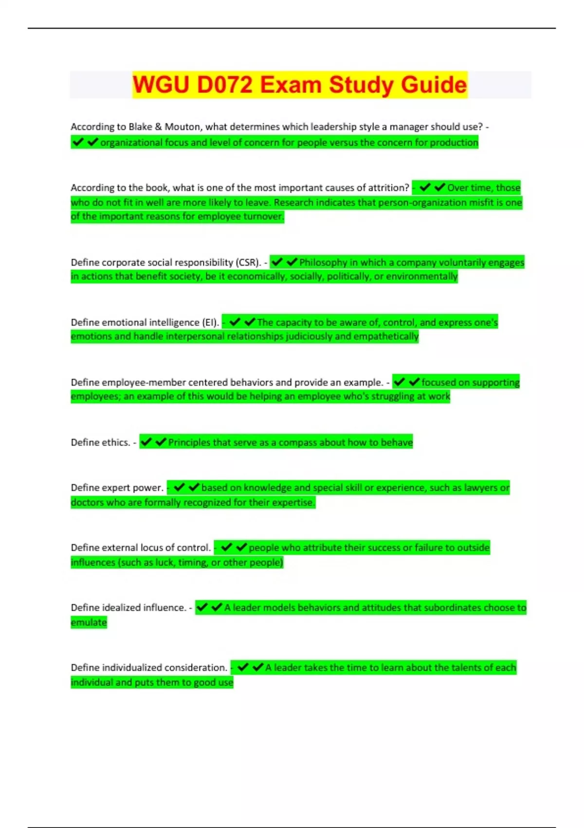WGU D072 Fundamental for Success in Business Study Guide/ (Top 2024/2025 EXAM REVIEW PAPERS / GRADED A+/ 100% Accurate)