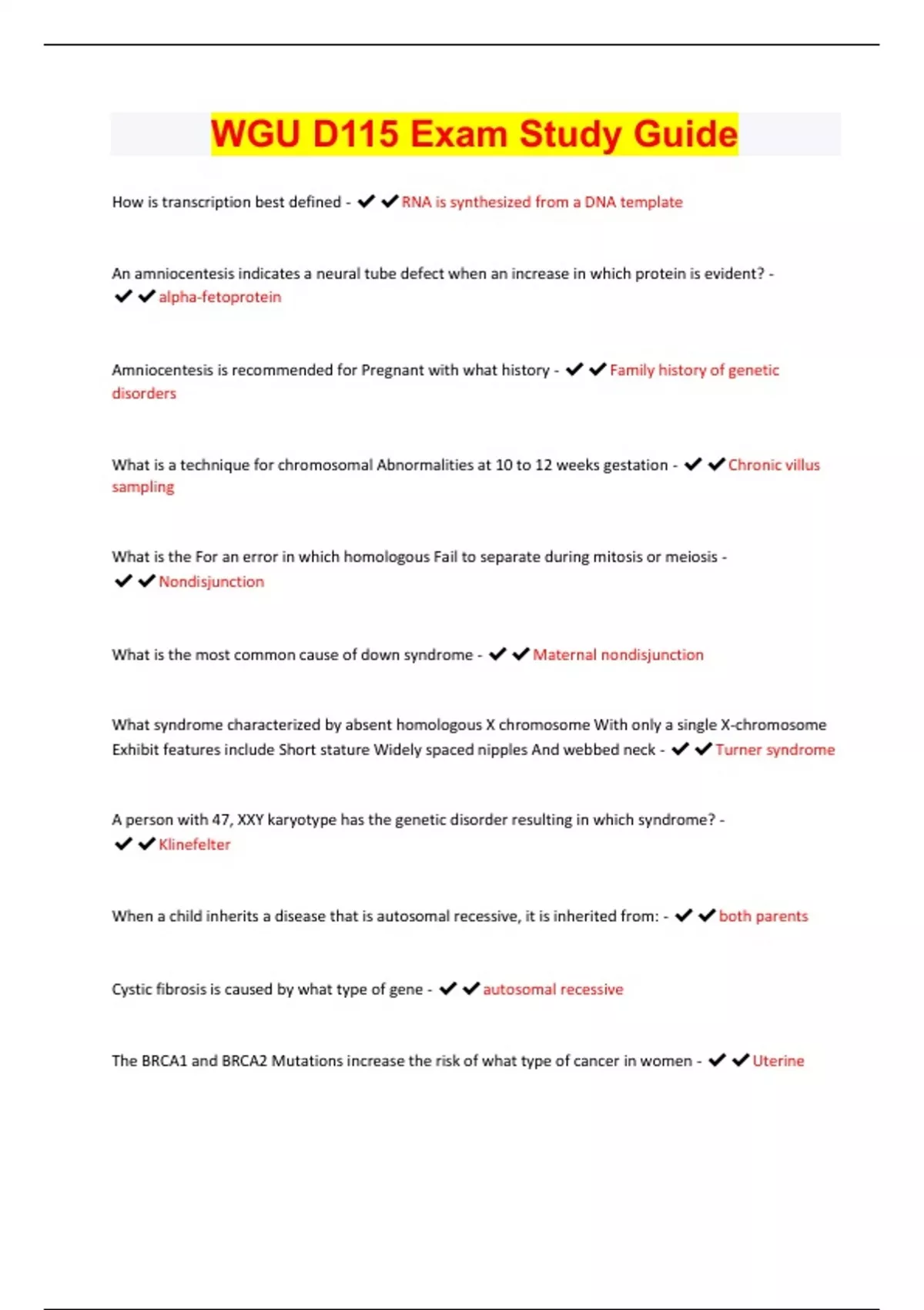 WGU D115 Exam Study Guide/ (Top 2024/2025 EXAM REVIEW PAPERS / GRADED A+/ 100% Accurate)