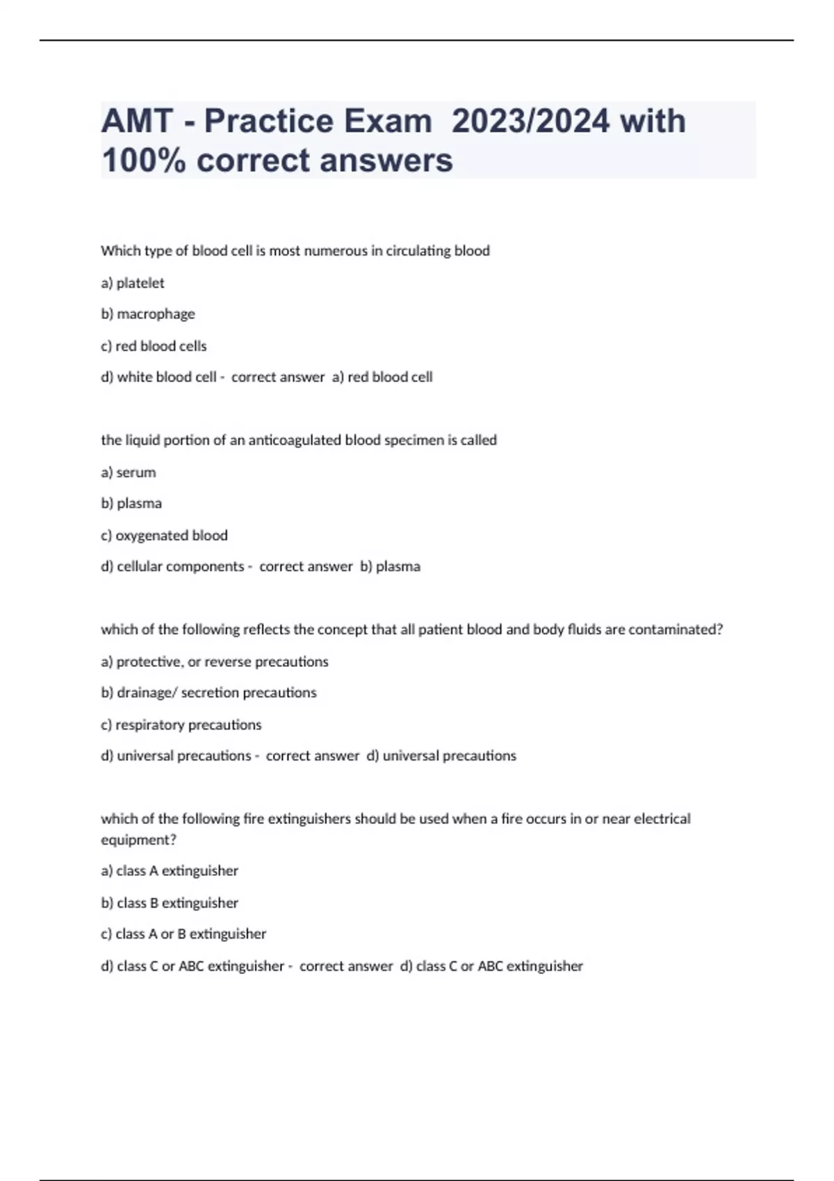 AMT MT ASCP/ exam 2023/2024 with 100% correct answers AMT MT Practice Exam 2023/2024 with 100% correct answers