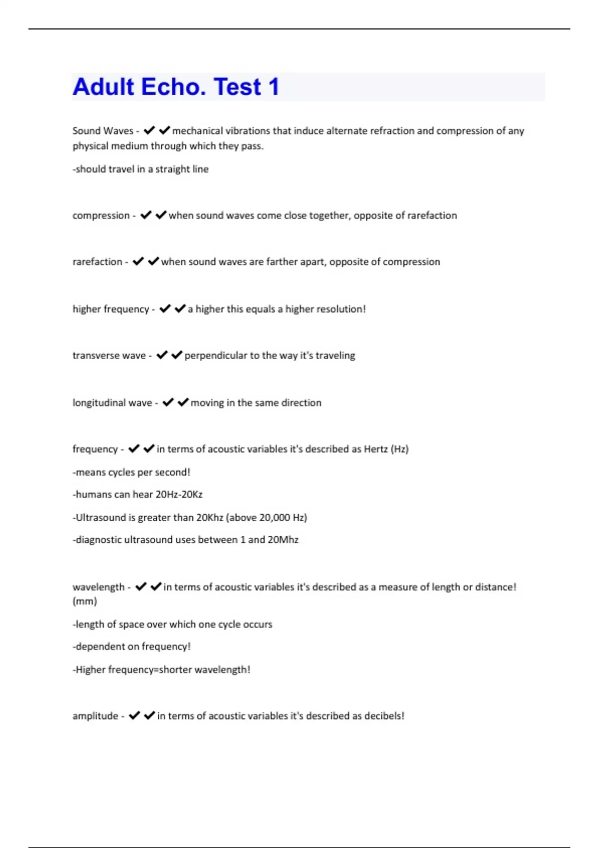 Adult Echo Study Guide Rated 100% Correct!!