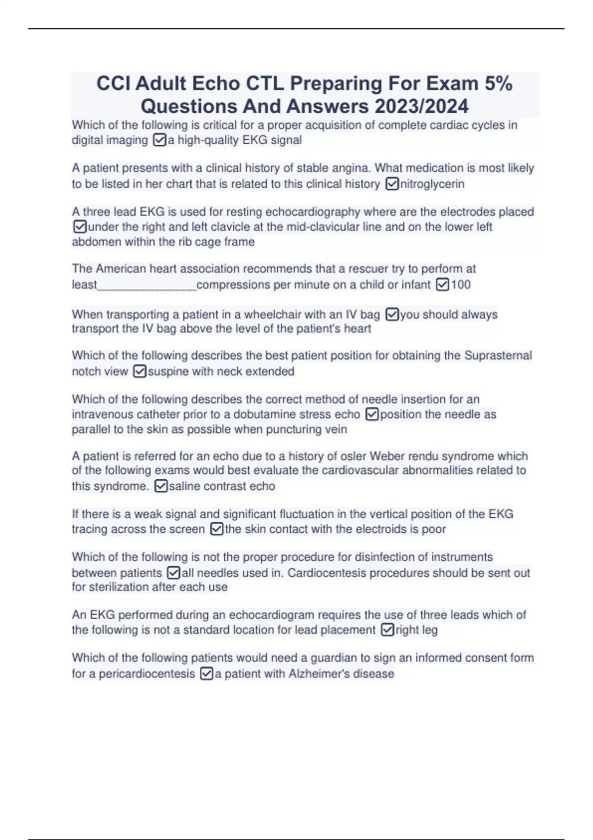 CCI Adult Echo CTL Verified Study Package Deal With Complete Study Solutions 2023/2024