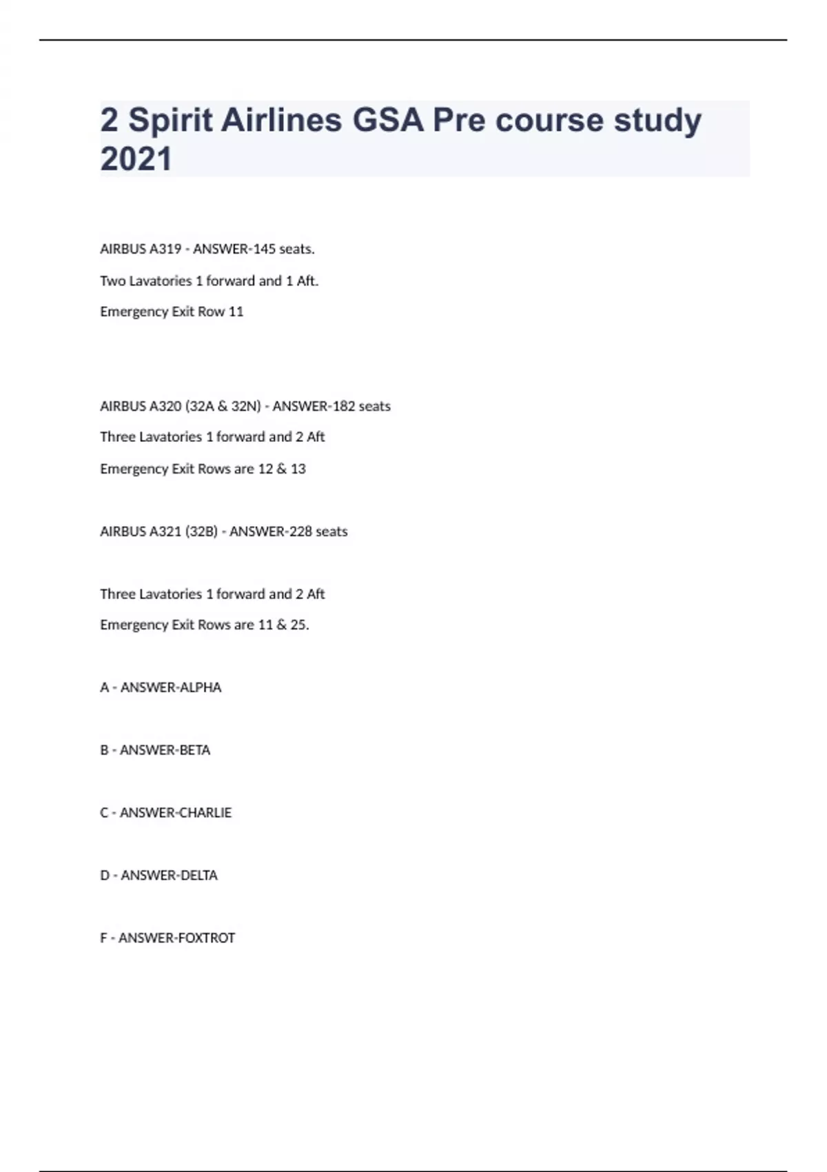 Spirit Airlines GSA Assessment Exam Questions & Answers 2023/2024