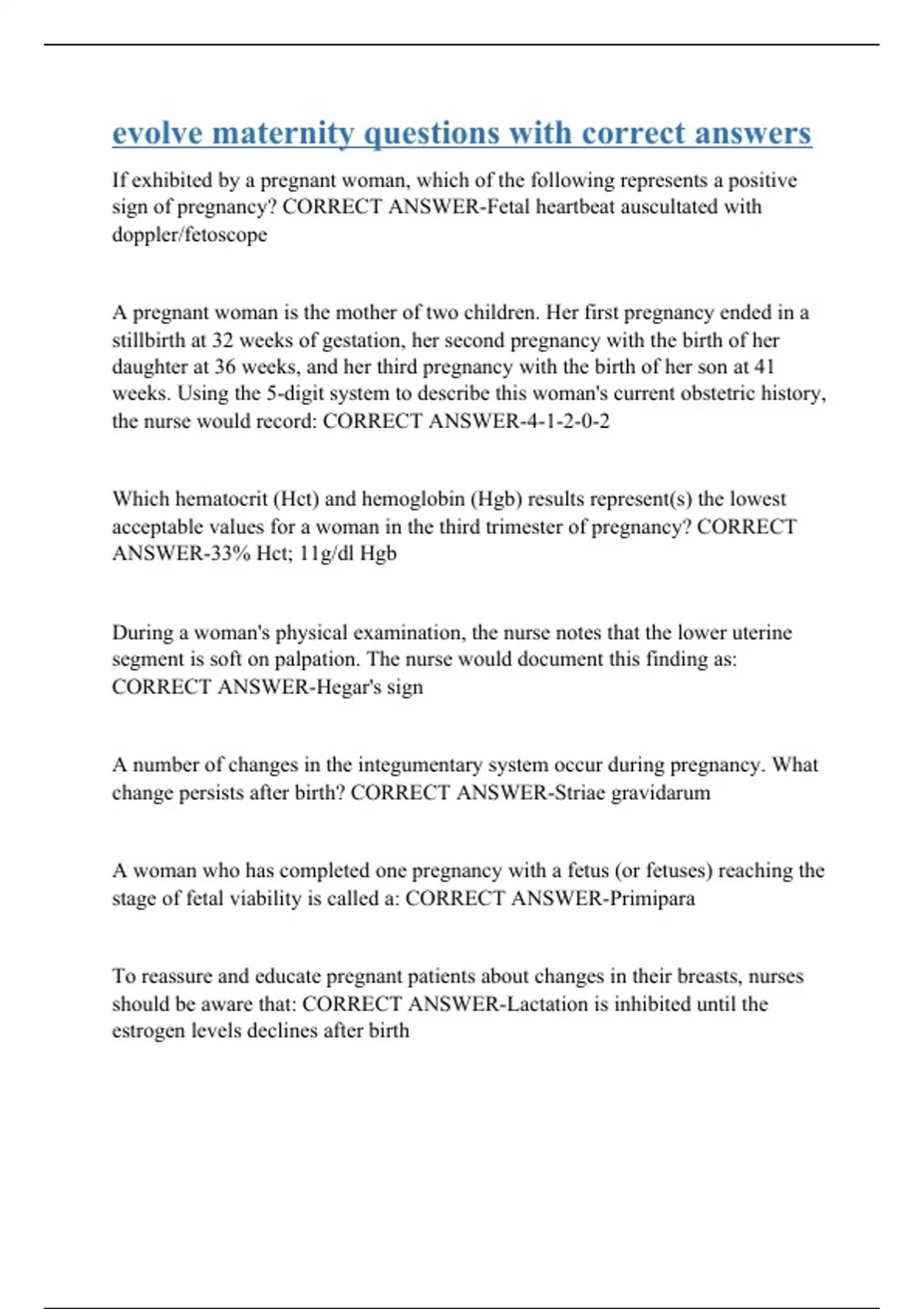 Evolve Maternity and Women's Health Nursing Tests Compilation Bundle