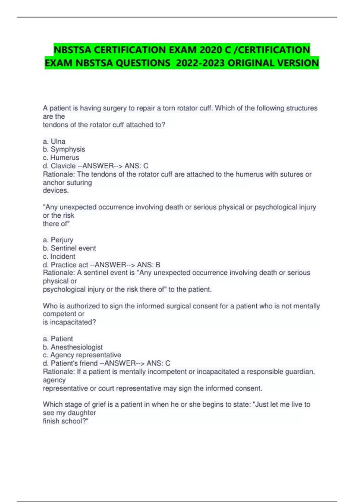 BUNDLE FOR NBSTSA CERTIFICATION EXAM 2020A /CERTIFICATION EXAM NBSTSA QUESTIONS ORIGINAL VERSION