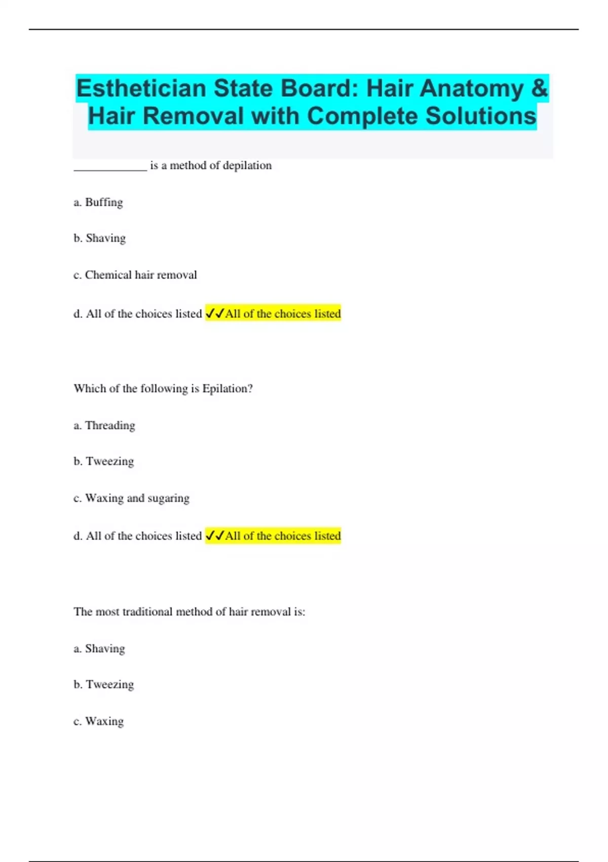 Esthetician State Board: Hair Anatomy & Hair Removal Questions with Complete Solutions