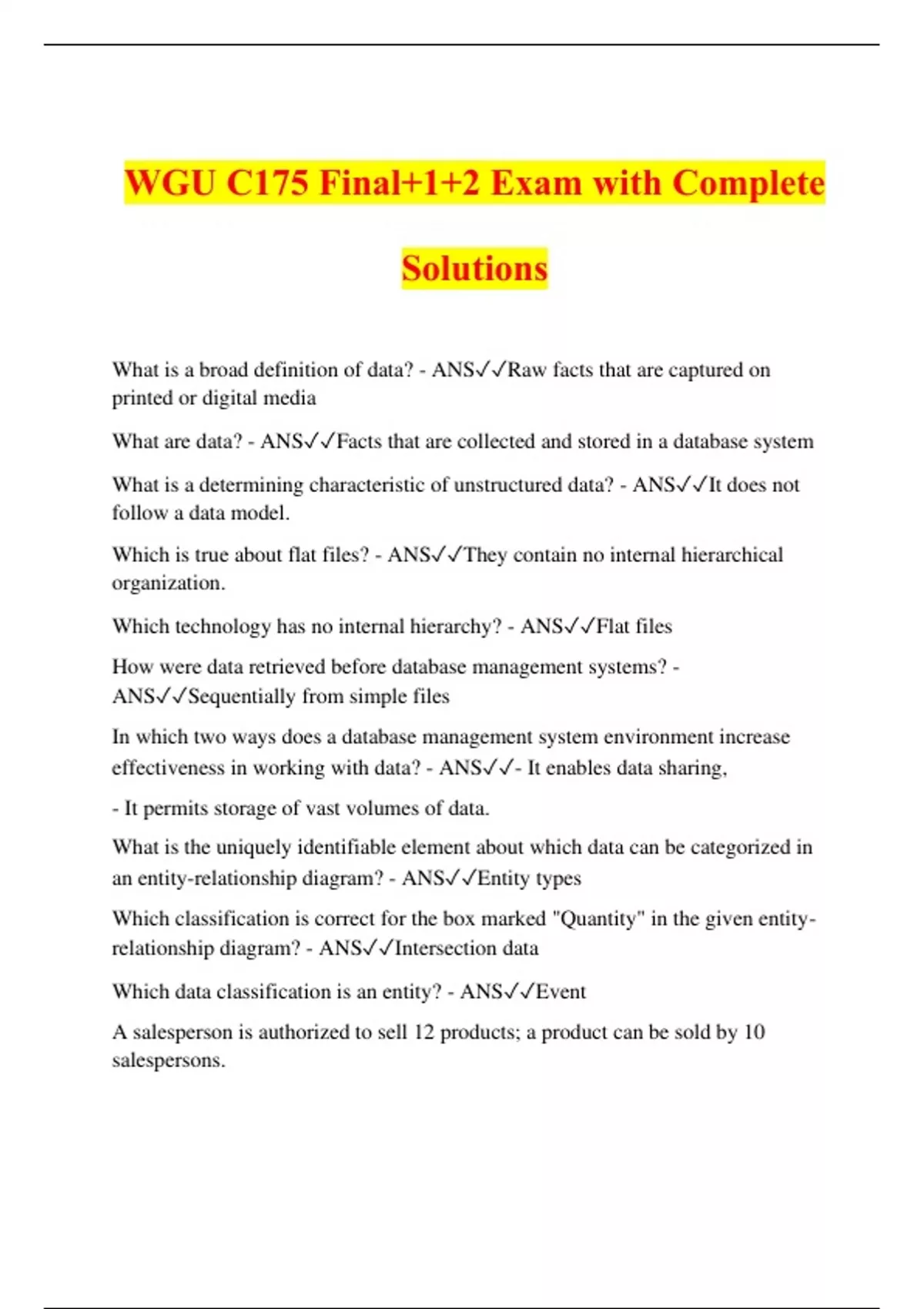 WGU C175 Final+1+2 Exam with Complete Solutions