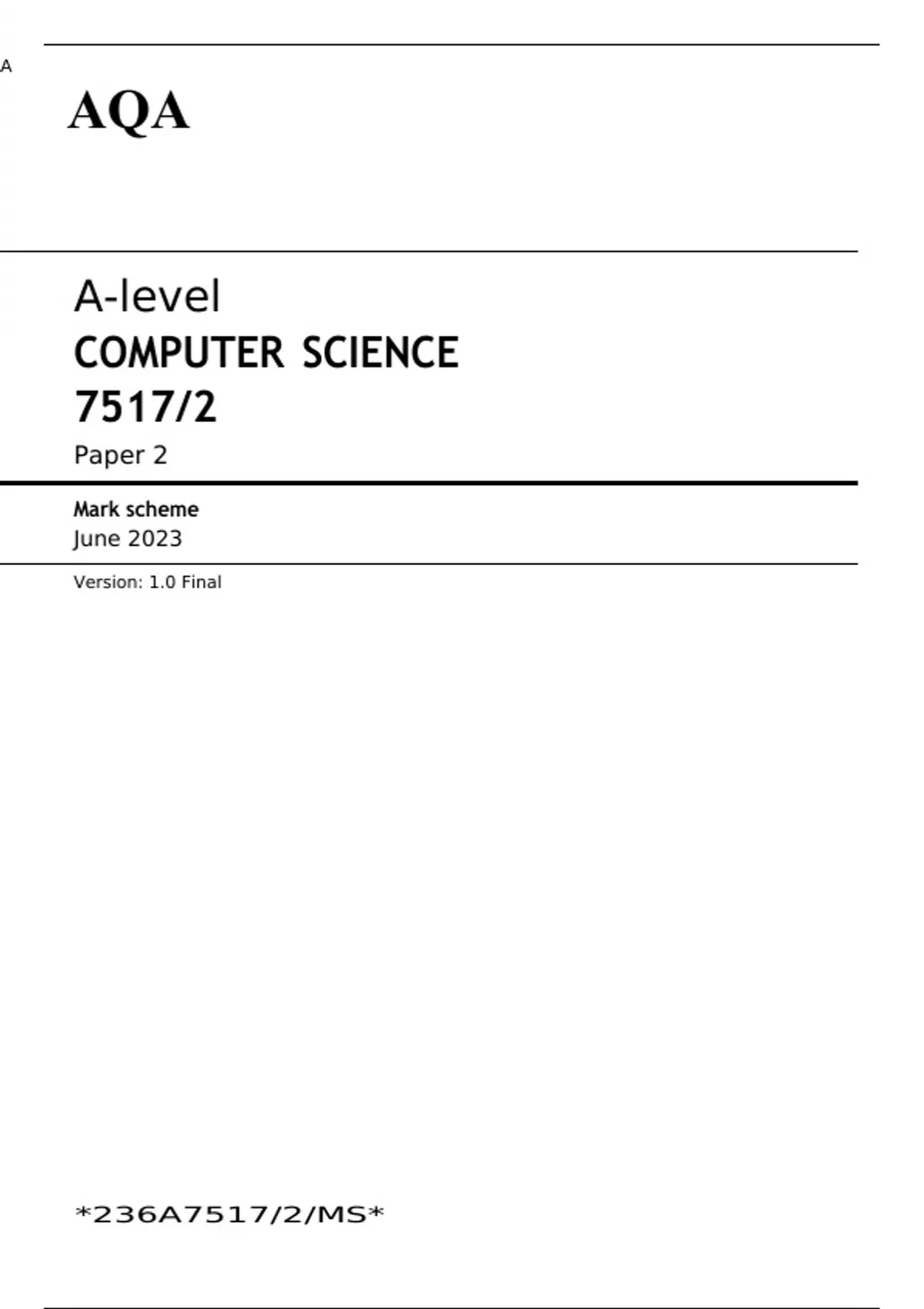 AQA A-level COMPUTER SCIENCE Paper 2 JUNE 2023 QUESTION PAPER AND MARK SCHEME