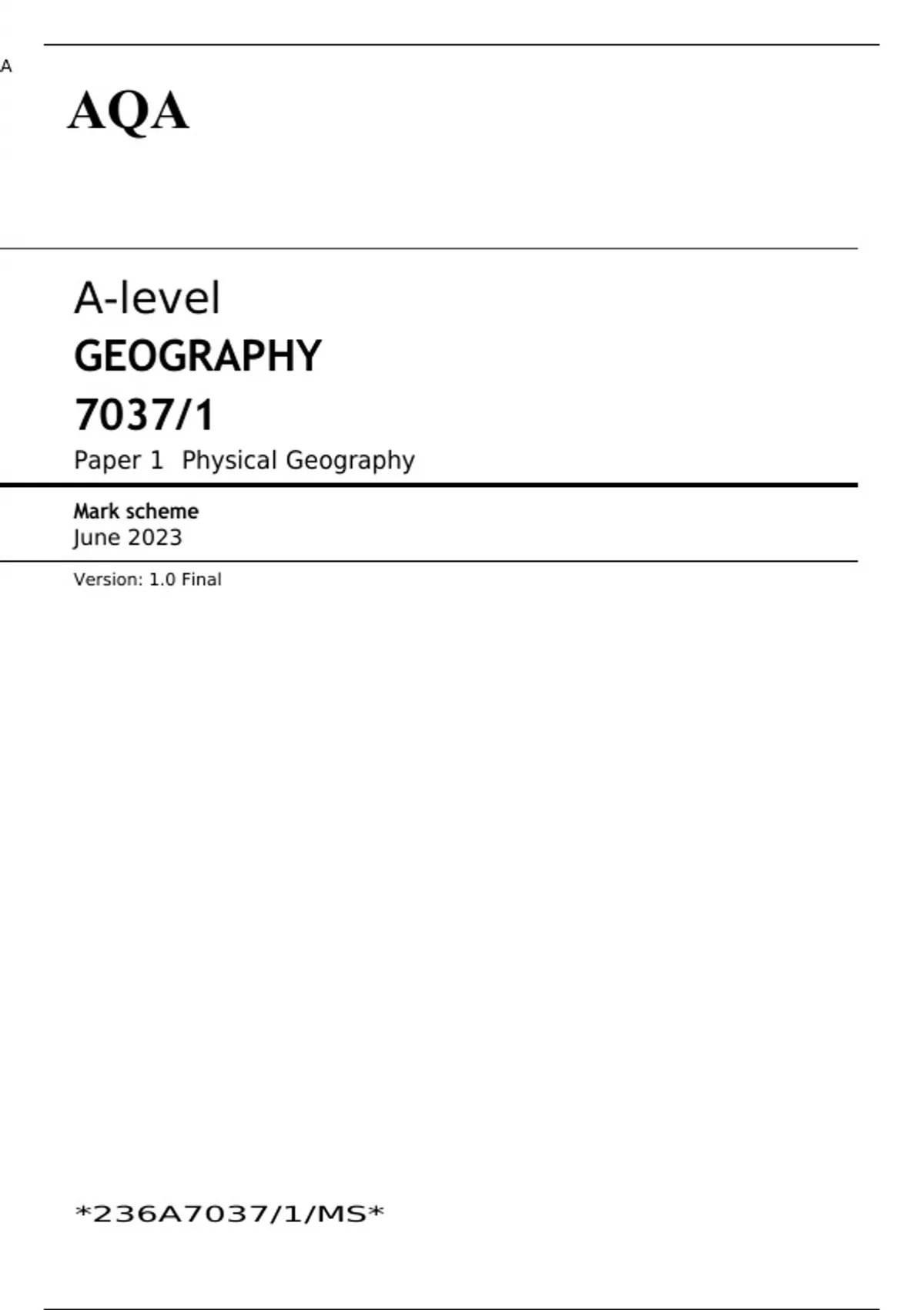 AQA A-level GEOGRAPHY Paper 1 JUNE 2023 QUESTION PAPER AND MARK SCHEME