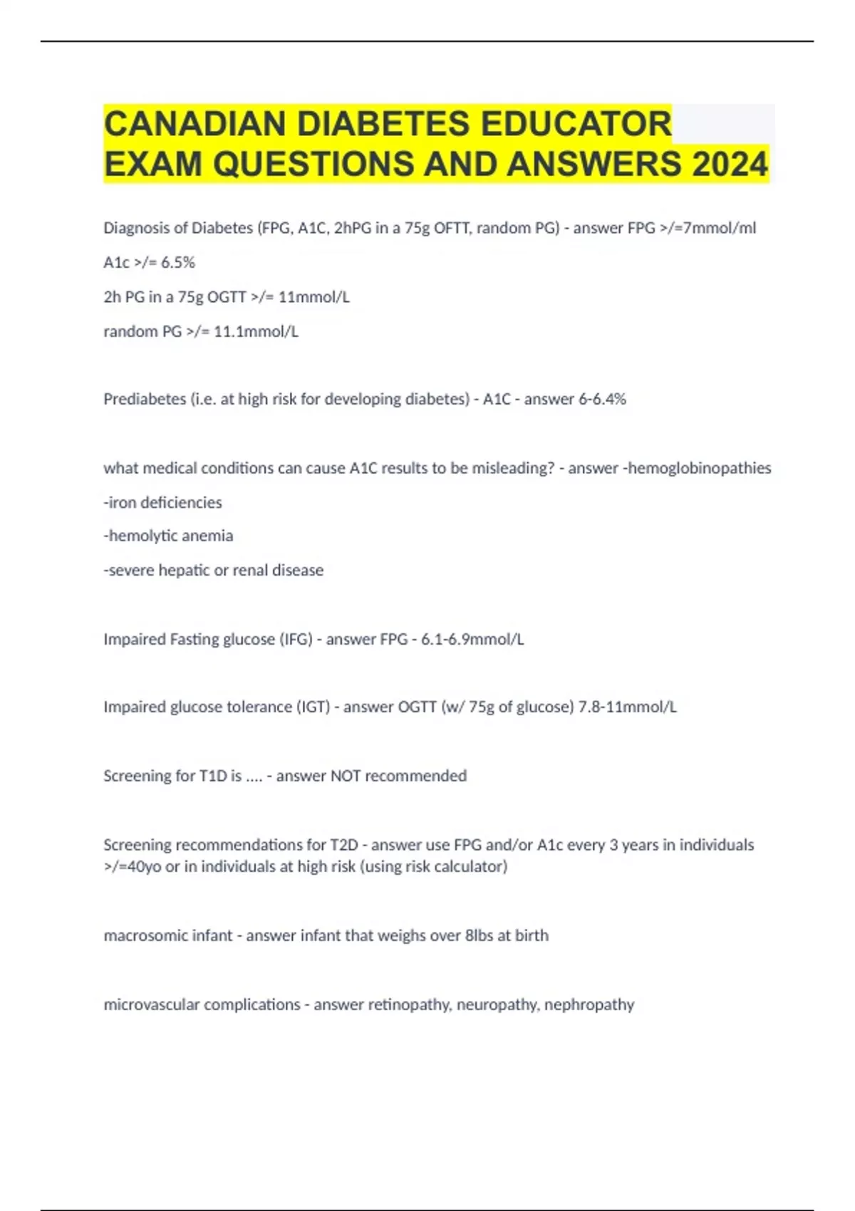 CANADIAN DIABETES EDUCATOR EXAM QUESTIONS AND ANSWERS 2024