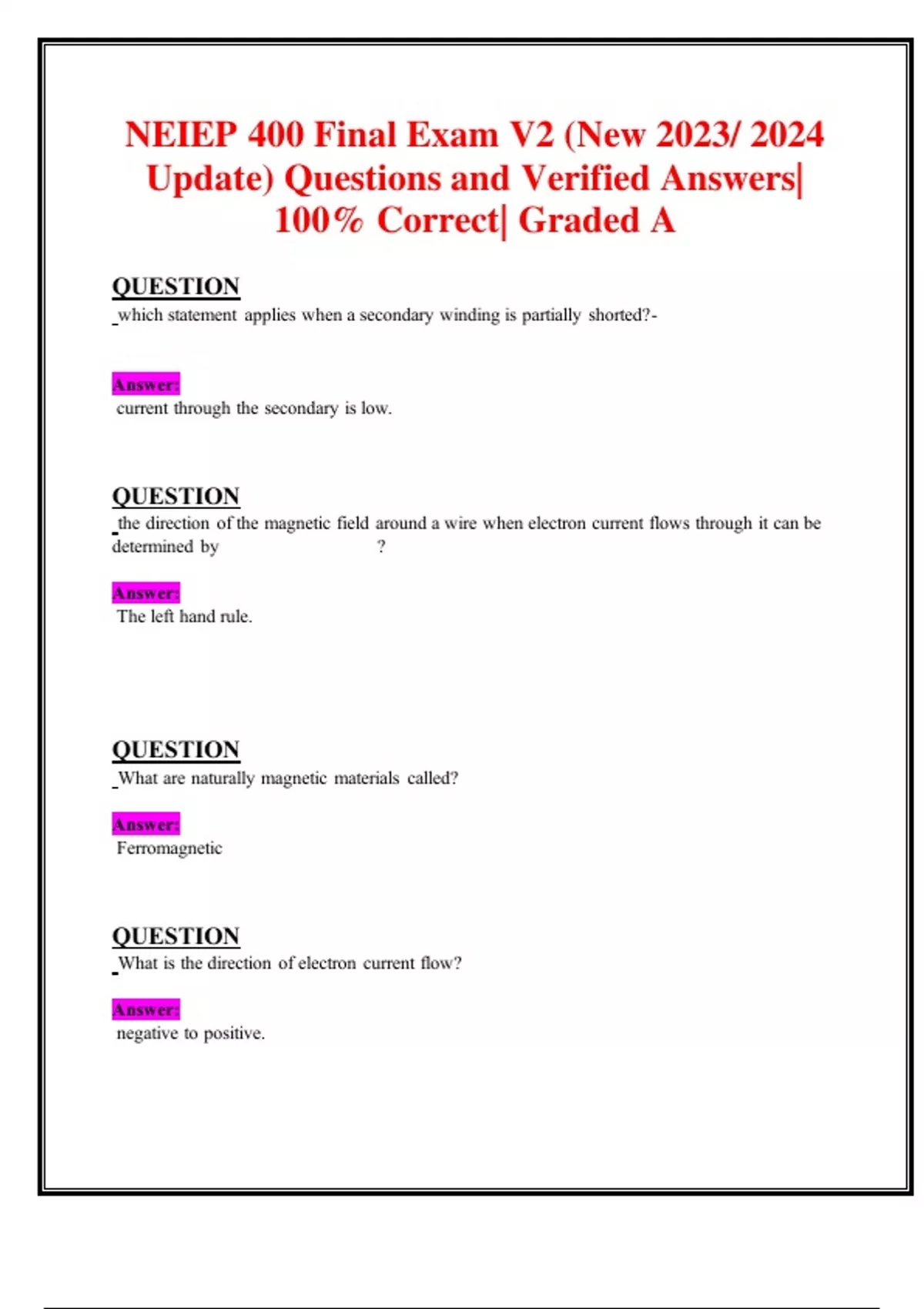 NEIEP 400 Final Exam V2 (New 2023/ 2024 Update) Questions and Verified Answers| 100% Correct| Graded A