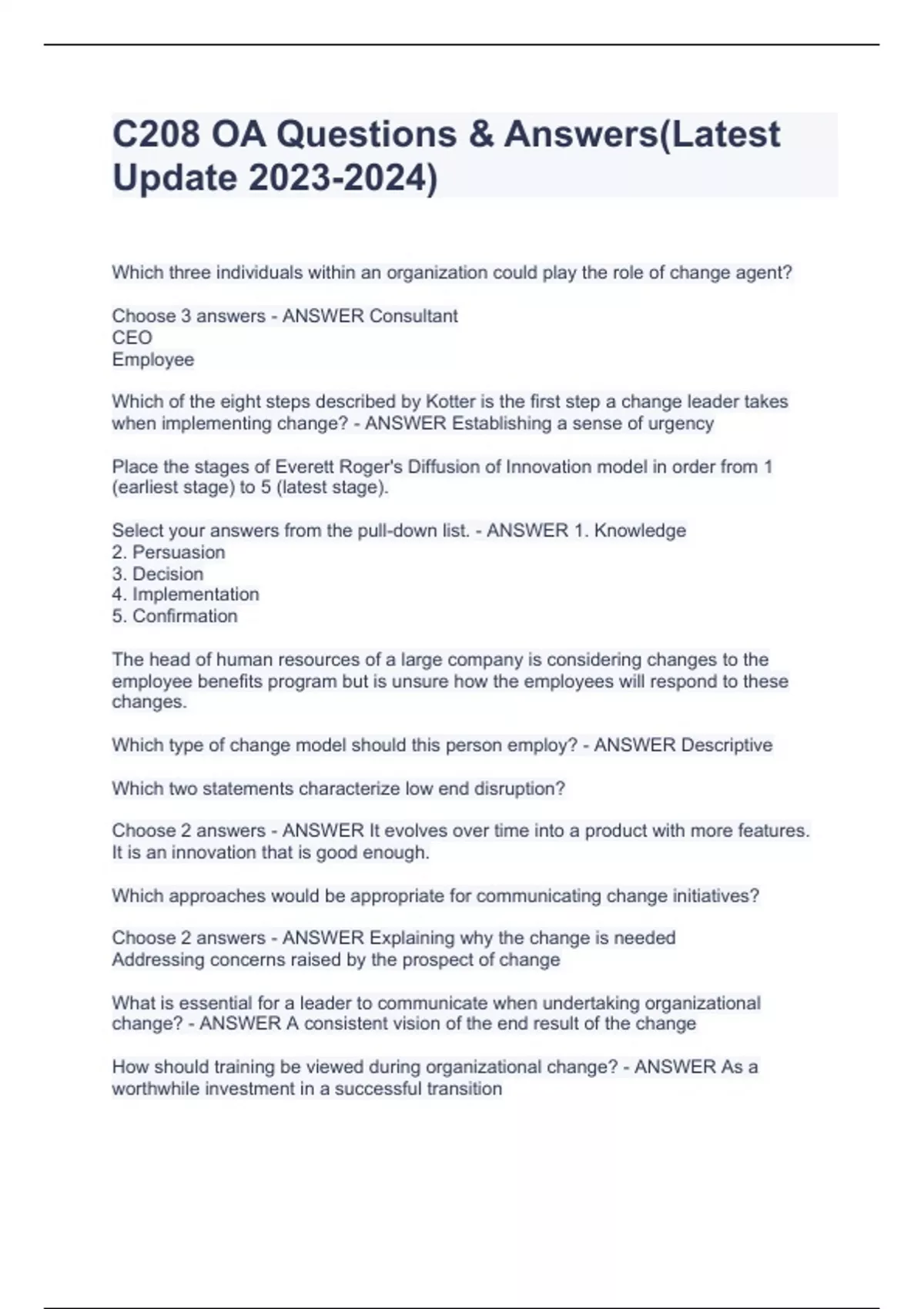 C208 - Change Management and Innovation Correct 100%(GRADED A+)