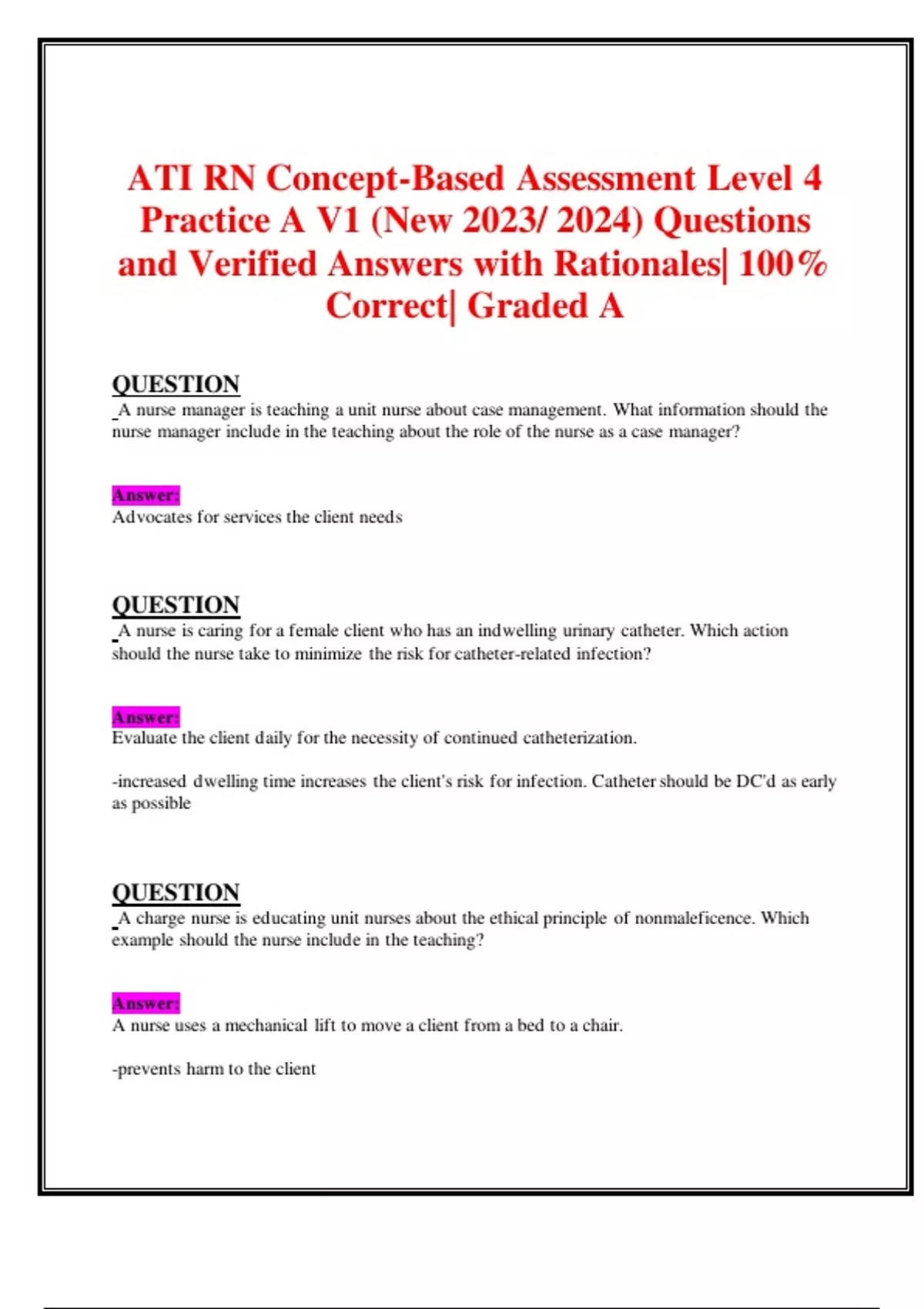 ATI RN Concept-Based Assessment Level 4 Practice A V1 (New 2023/ 2024) Questions and Verified Answers with Rationales| 100% Correct| Graded A