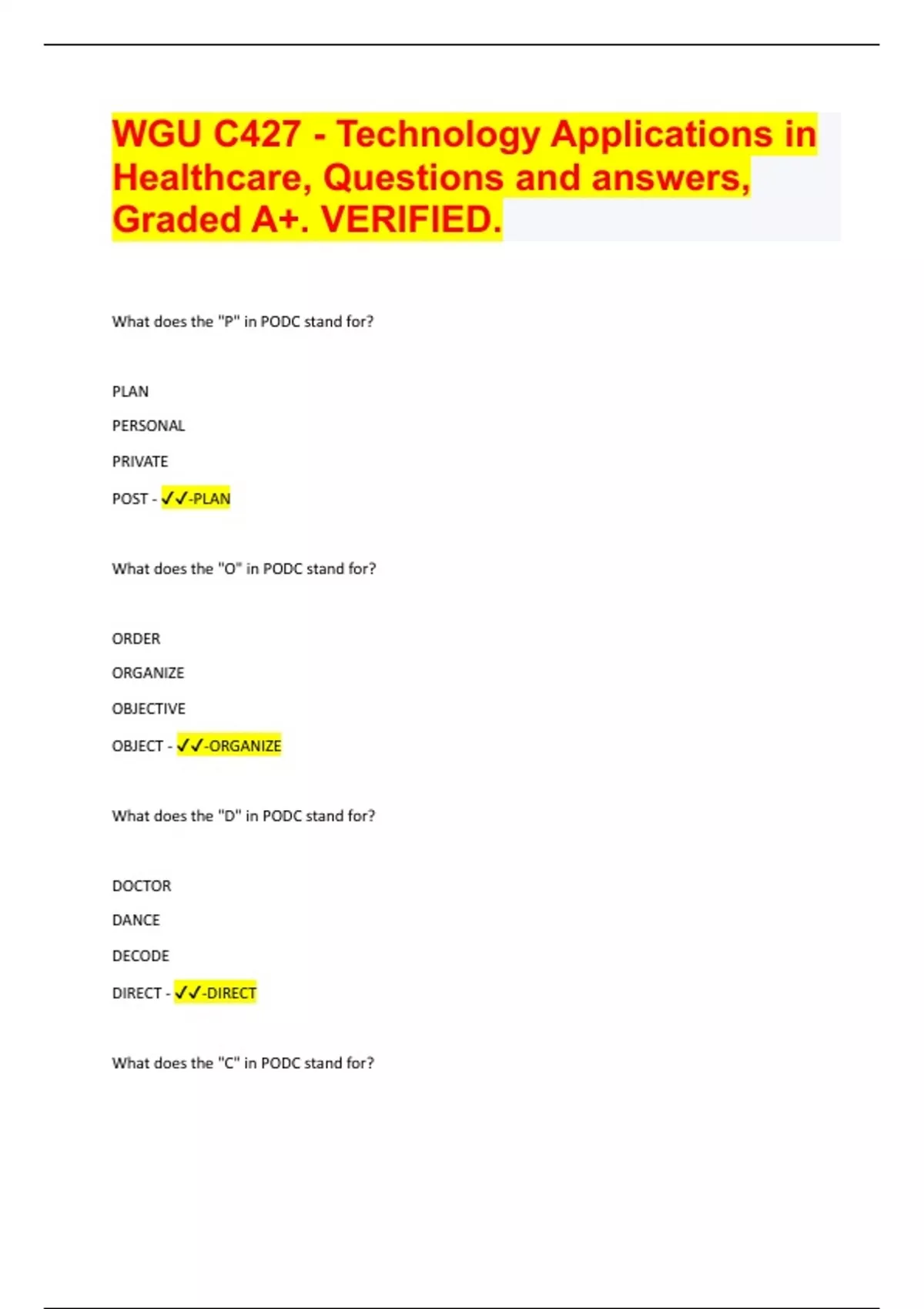Bundle for WGU C427 Exams Compilation | Verified | Guaranteed Success