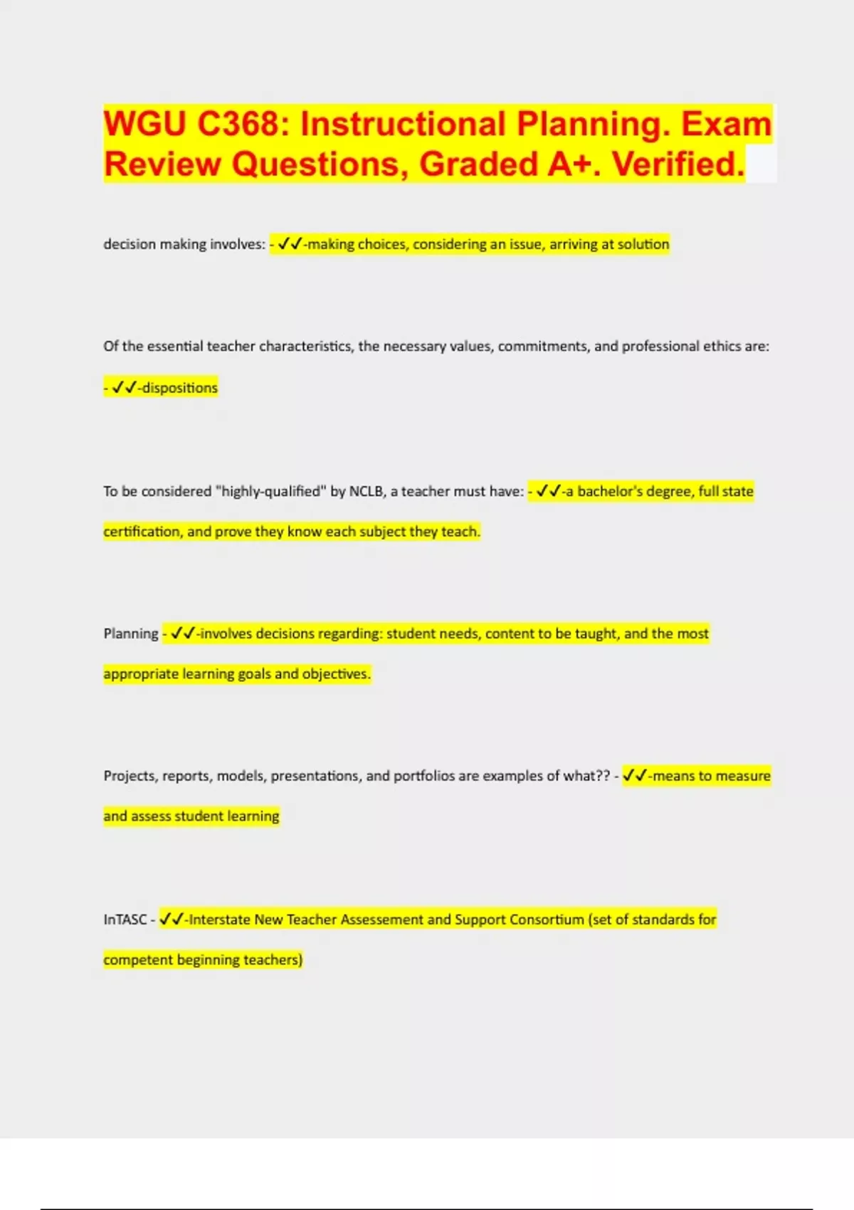 WGU C368: Instructional Planning. Exam Review Questions, Graded A+. Verified