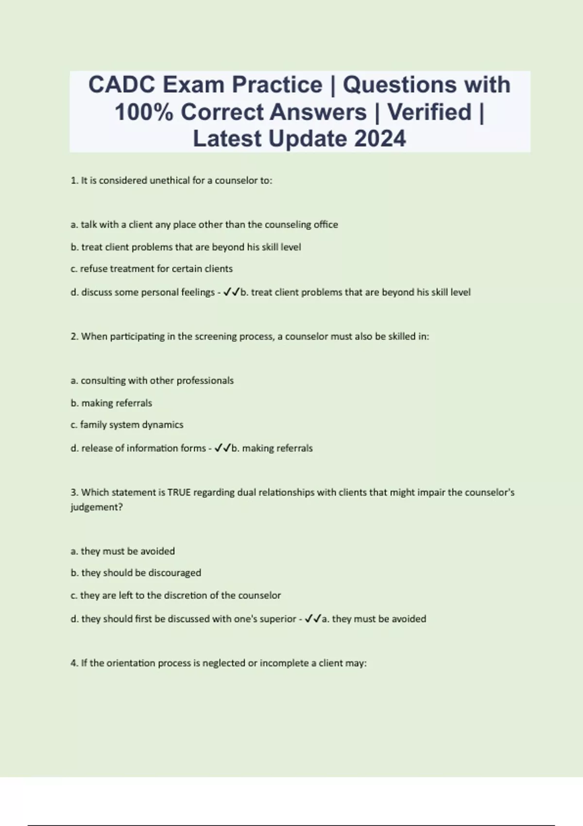 CADC Exam Practice | Questions with 100% Correct Answers | Verified | Latest Update 2024 | 22 Pages