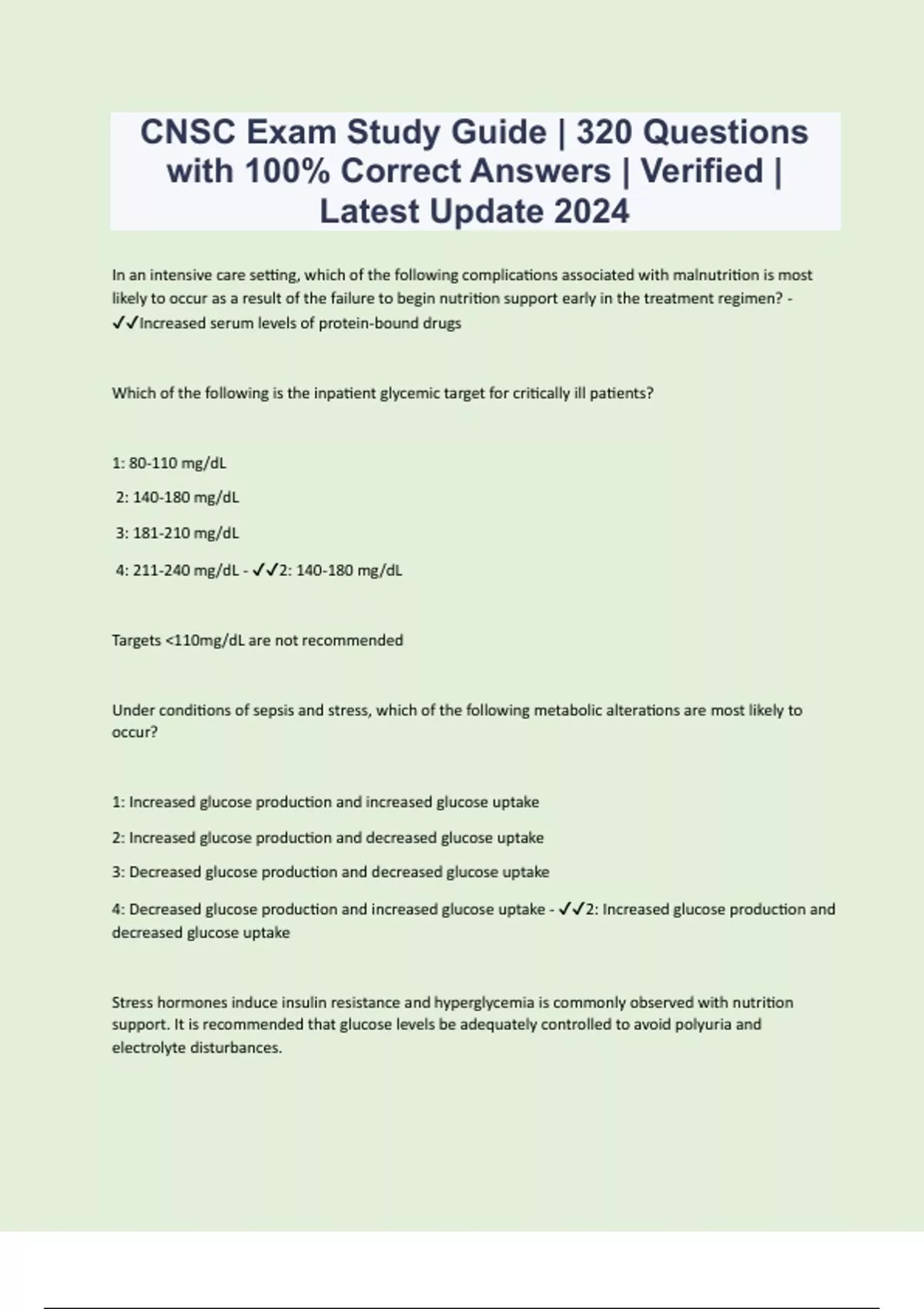 CNSC Exam Study Guide | 320 Questions with 100% Correct Answers | Verified | Latest Update 2024 | 102 Pages