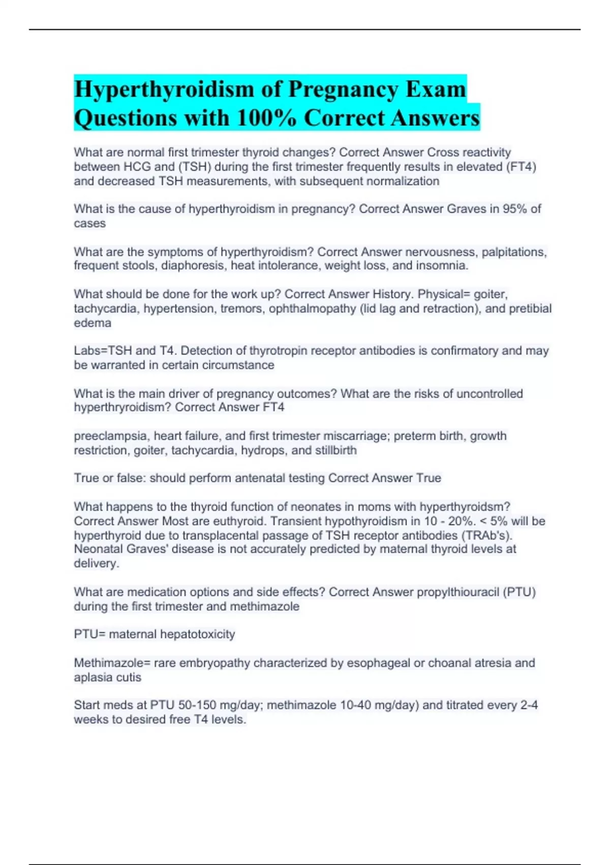 Hyperthyroidism NCLEX Exam Questions with 100% Correct Answers Hyperthyroidism of Pregnancy Exam Questions with 100% Correct Answers Hypothyroidism vs Hyperthyroidism NCLEX Questions with 100% Correct Answers Thyroid Disorders NCLEX Questions with 100% Correct Answers Hypo / Hyperthyroidism 2 NCLEX Exam Questions with 100% Correct Answers
