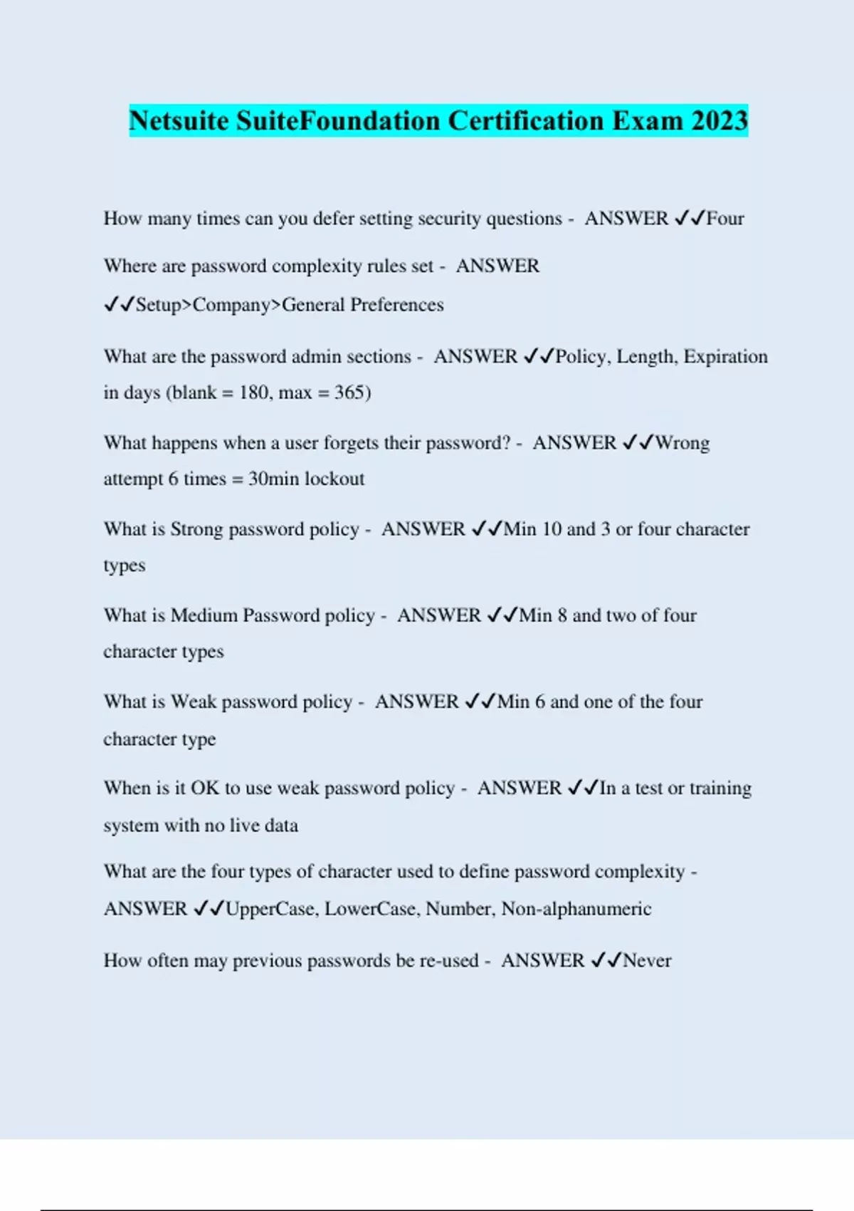 NetSuite Admin Certification Test 2023/2024 –Solved