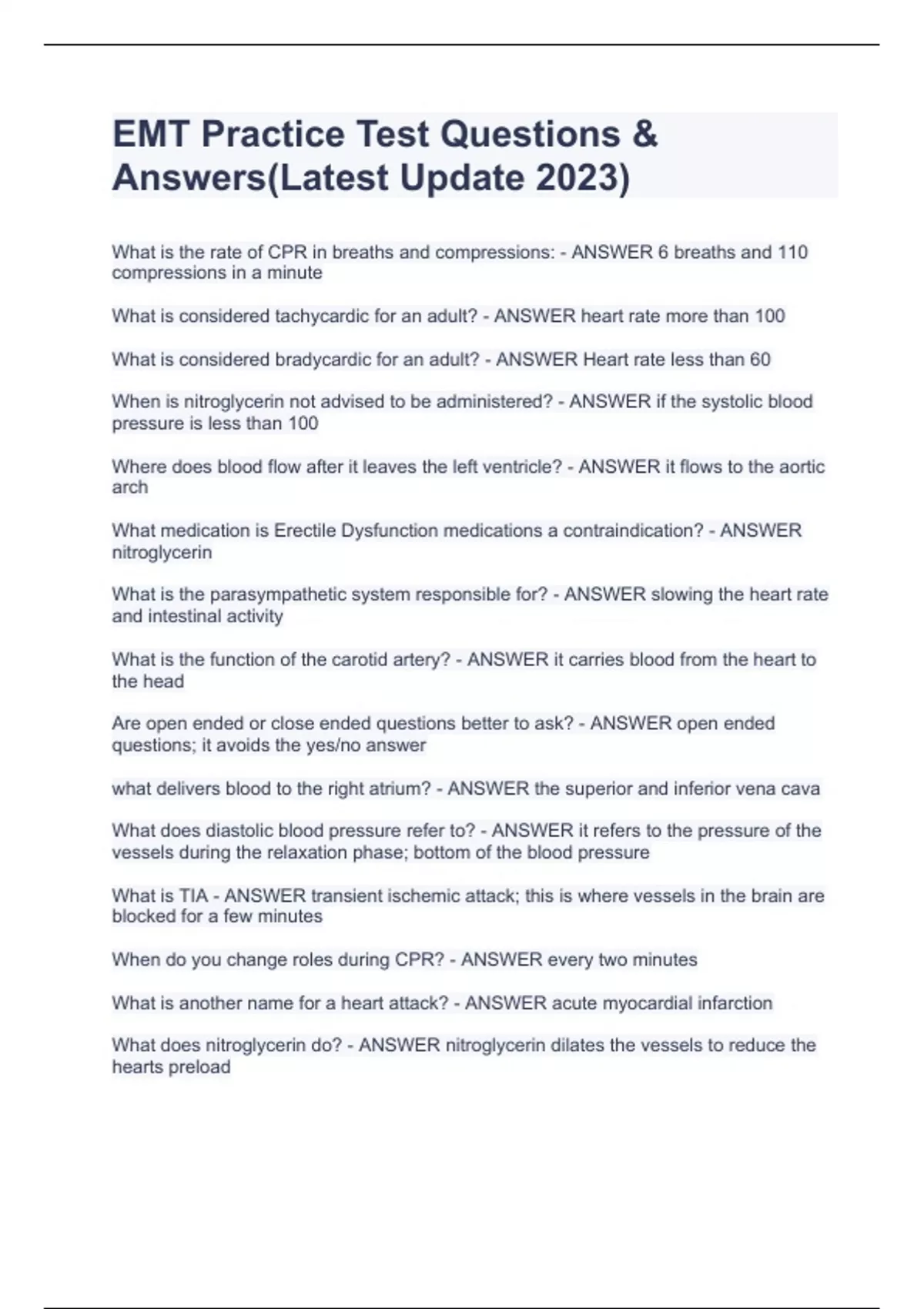 EMT Basic practice exam 2| 120 Questions | Correct Answers PACKAGE DEALEMT Basic practice exam 2| 120 Questions | Correct Answers PACKAGE DEALEMT Basic practice exam 2| 120 Questions | Correct Answers PACKAGE DEALEMT Basic practice exam 2| 120 Questions | Correct Answers PACKAGE DEALEMT Basic practice exam 2| 120 Questions | Correct Answers PACKAGE