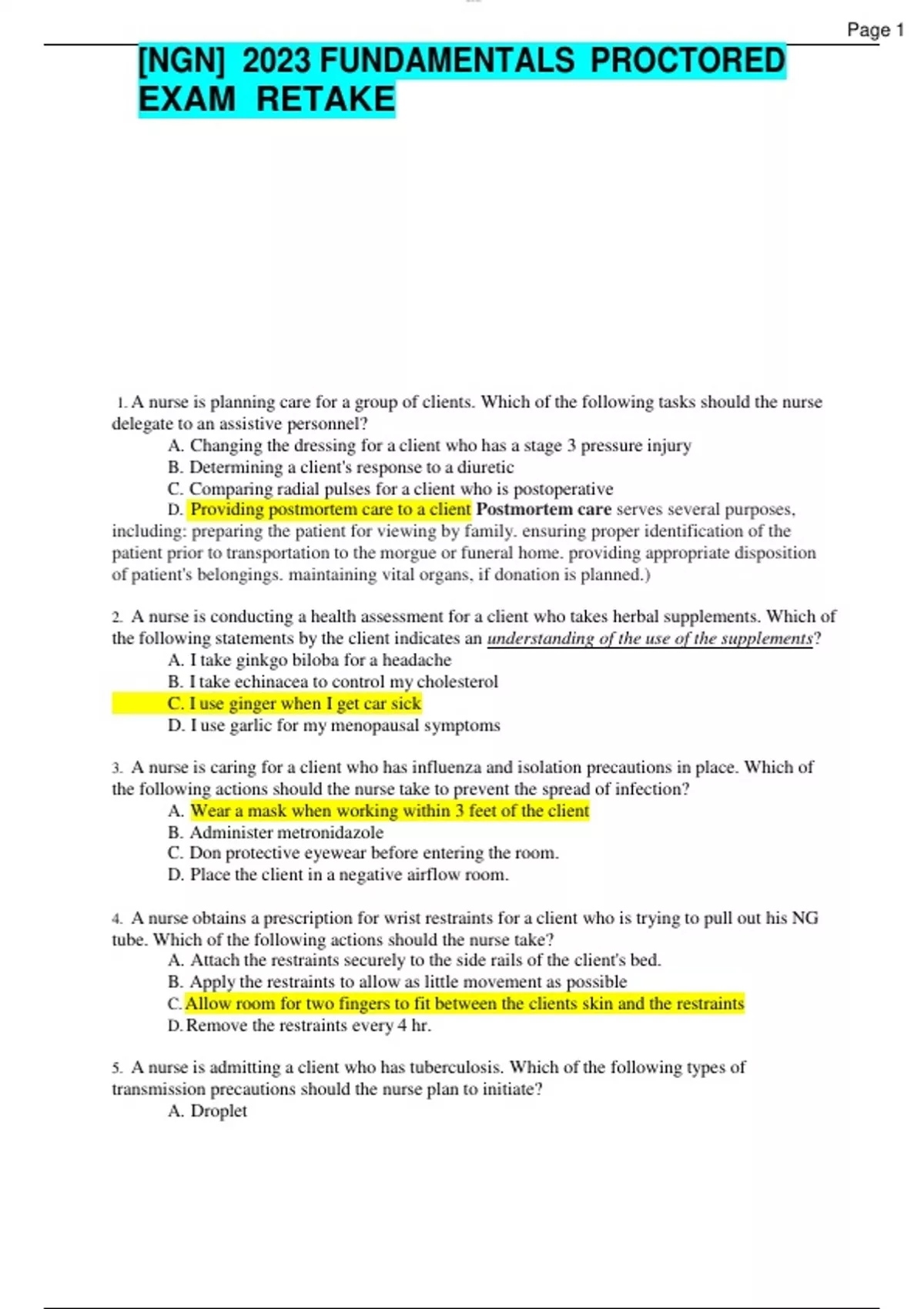 bundle for [NGN]2023 ATI FUNDAMENTALS PROCTORED EXAM RETAKE (All Questions Correctly Answered)