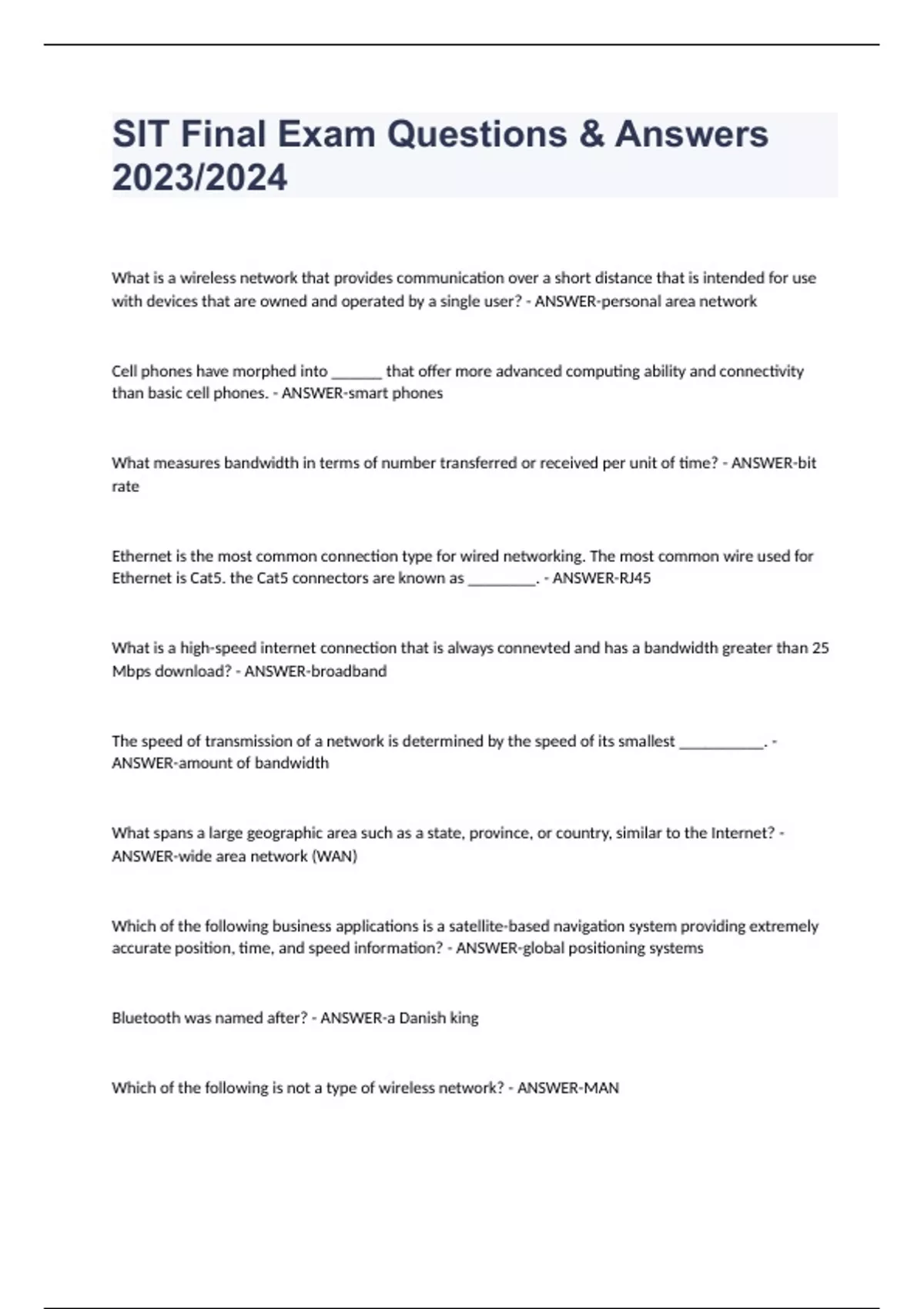 SIT Final Exam Questions & Answers 2023/2024