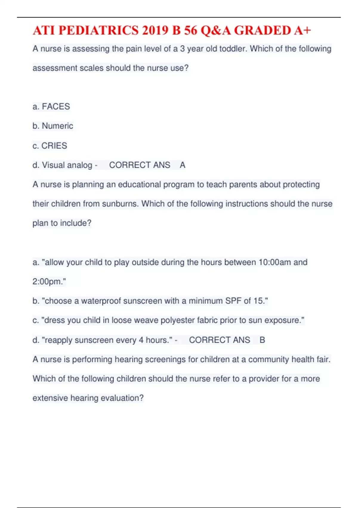 ATI PEDIATRICS 2019 B /ATI PEDIATRIC VITAL SIGNS /ATI PEDIATRICS PRACTICE /ATI PEDIATRICS PROCTORED REVIEW /ATI PEDIATRICS PROCTORED /ATI PROCTORED PEDS, ATI PEDIATRICS PROCTORED EXAM, PEDS ATI PROCTORED REVIEW /GALEN COLLEGE OF NURSING PEDIATRICS EXAM 2 FINAL PEDIATRICS FINAL/ATI