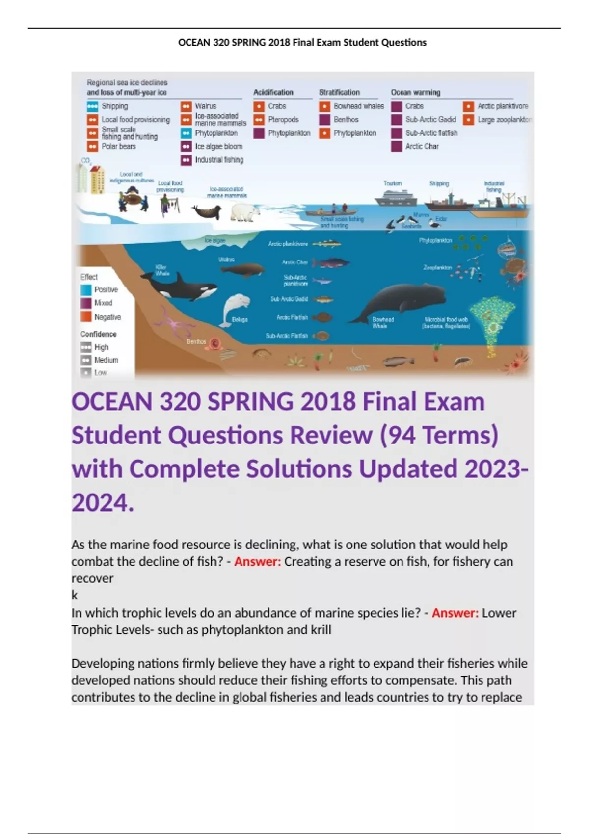 1 Exam (elaborations) OCEANS 320 Final Exam Questions (240 terms) with Correct, Certified Solutions . 2 Exam (elaborations) OCEAN 320 SPRING 2018 Final Exam Student Questions Review (94 Terms) with Complete Solutions Updated .