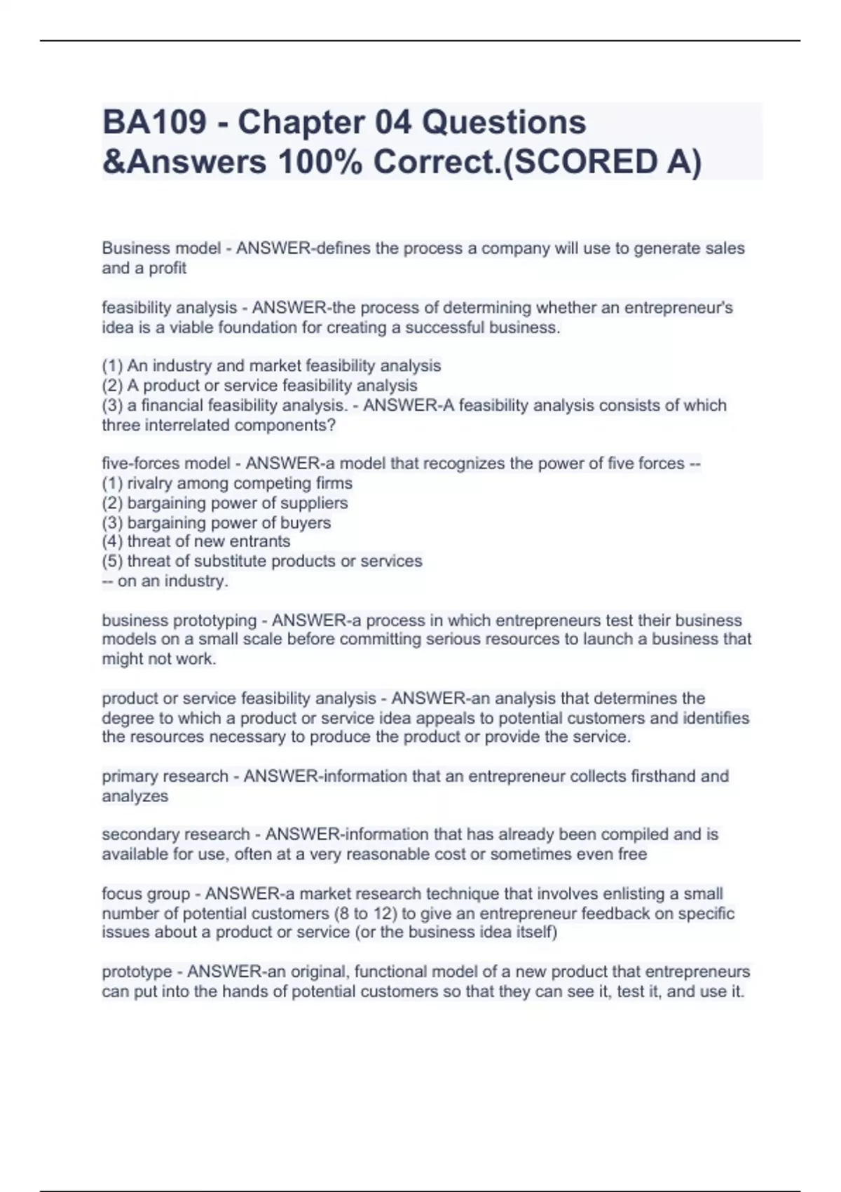 BA109 EXAM BUNDLE(COMPLETE PACKAGE)
