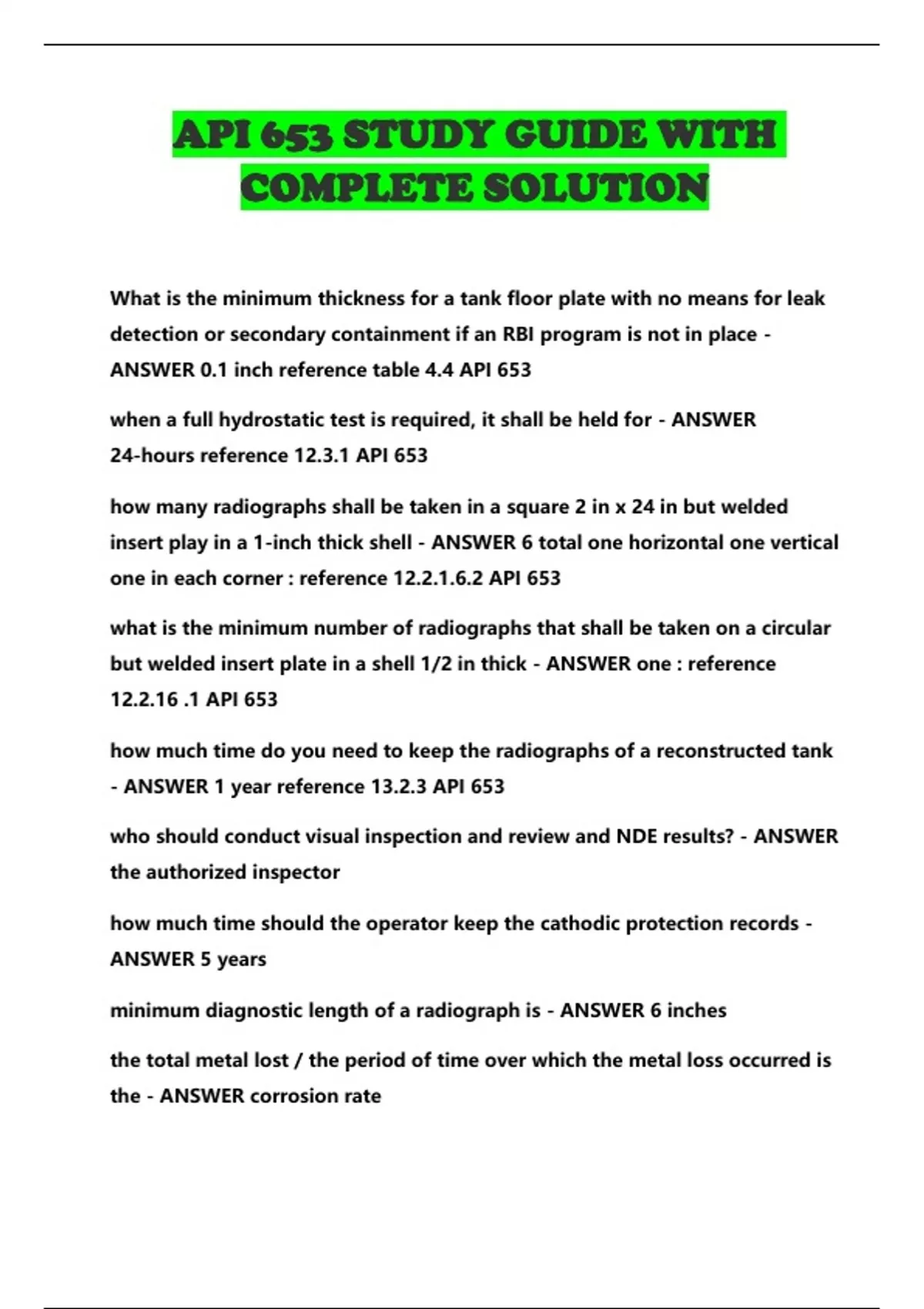 API 653 STUDY GUIDE WITH COMPLETE SOLUTION