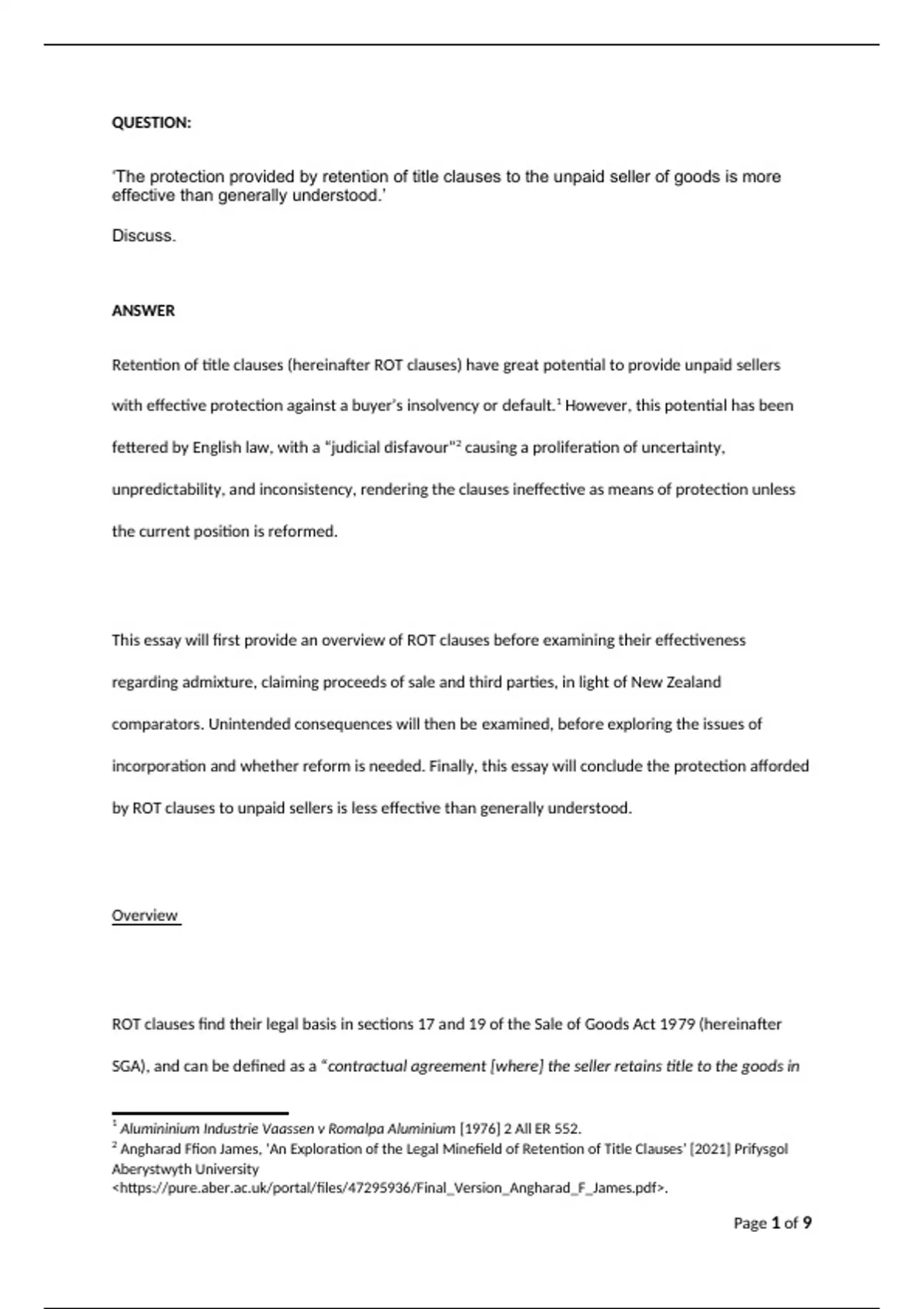 Second Year Law Essays from all modules: criminal law, trust law, land law, employment law, and commercial law.