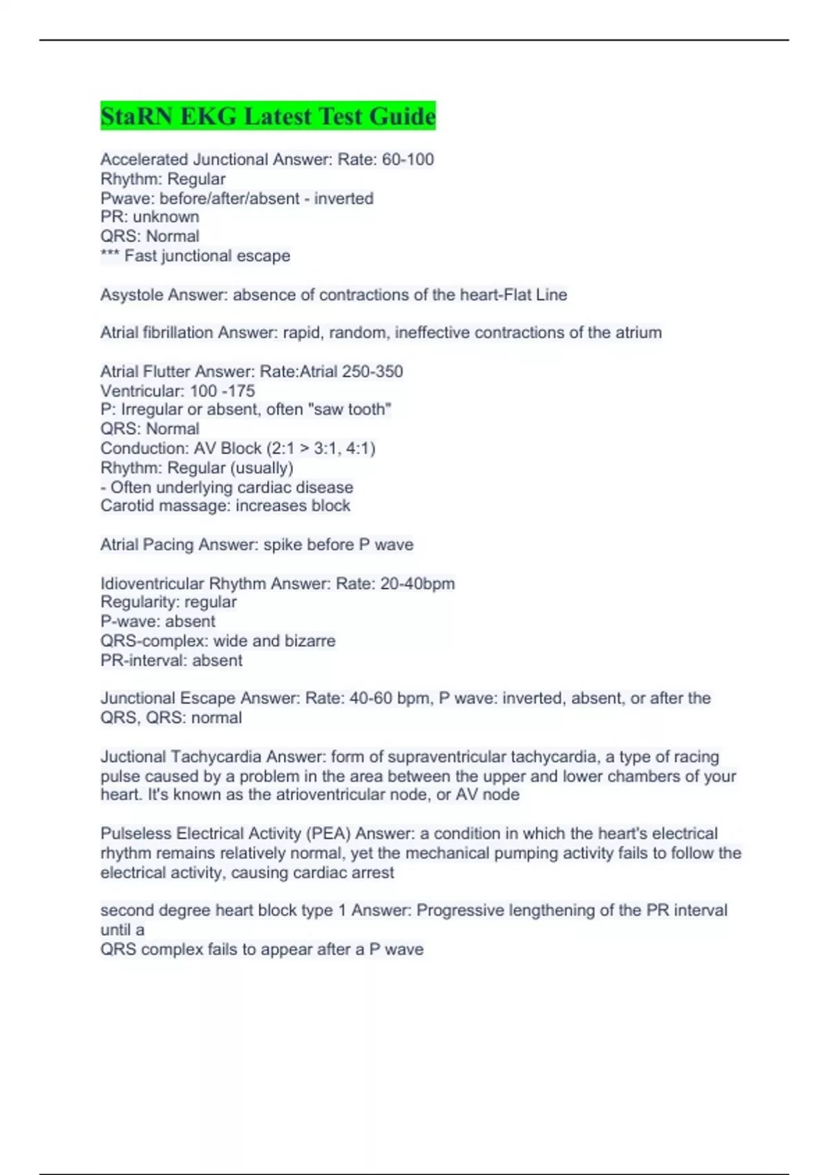EKG Technician Practice Test, StaRN EKG EXAM FOR HCA| Baylor Scott & White EKG Latest Exams ALL BUNDLED HERE !!!!!!!