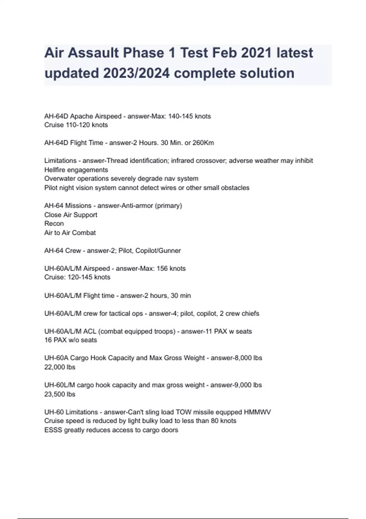 Air Assault School Phase I & II Bundled Exams Questions and Answers with Complete and Verified Solutions