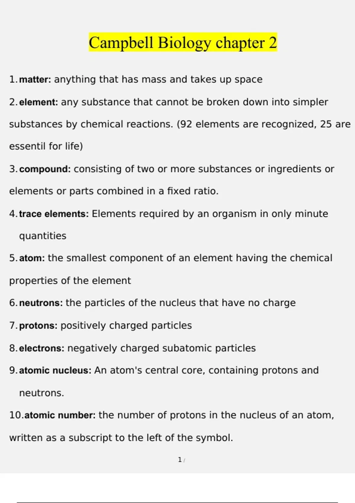 Complete Test Bank Campbell Biology 11 edition Questions & Answers with rationales (Chapter 2)