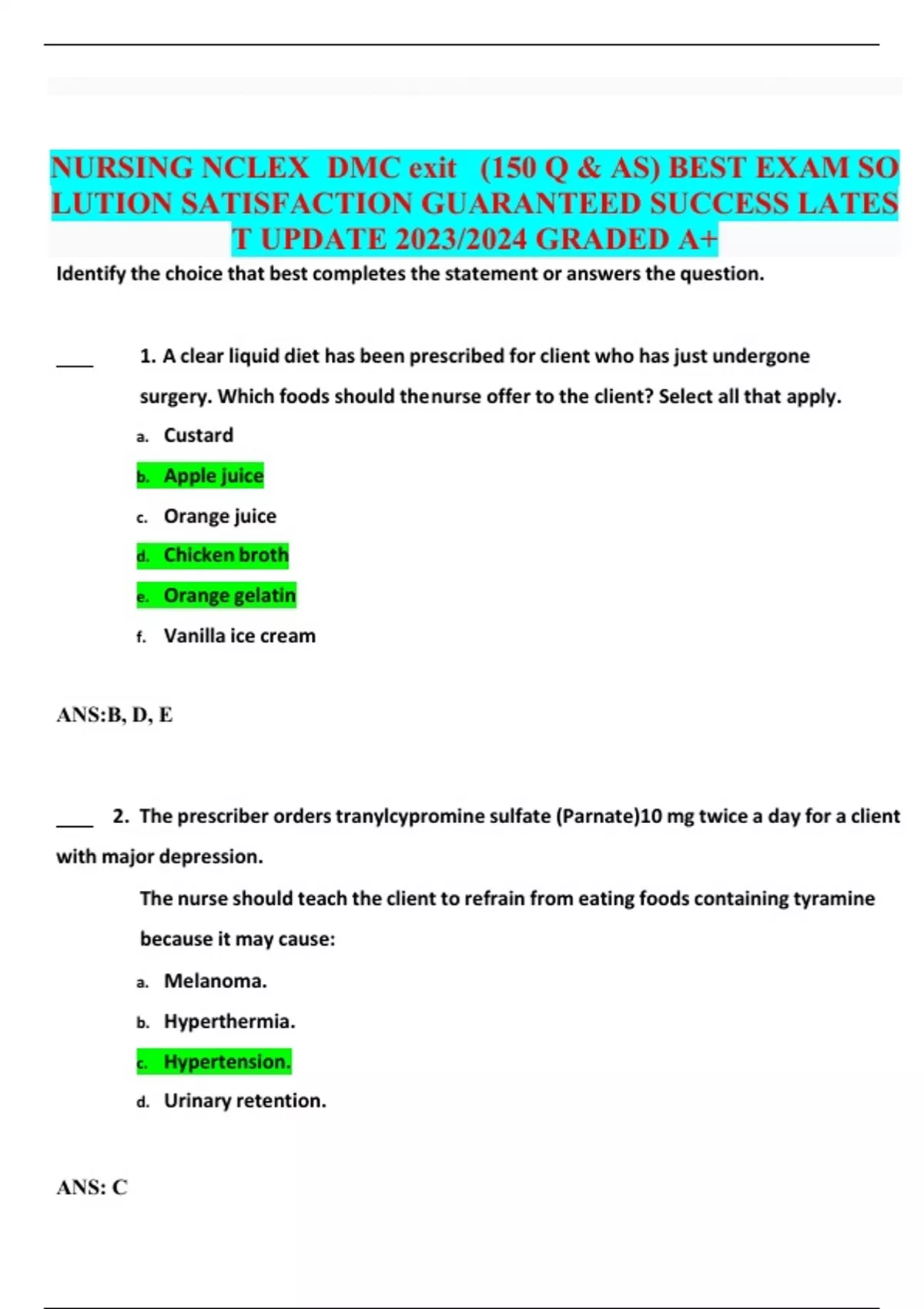 2023/2024 NCLEX RN NGN EXAM Questions and Answers Attained Grade A Assured Satisfaction latest update