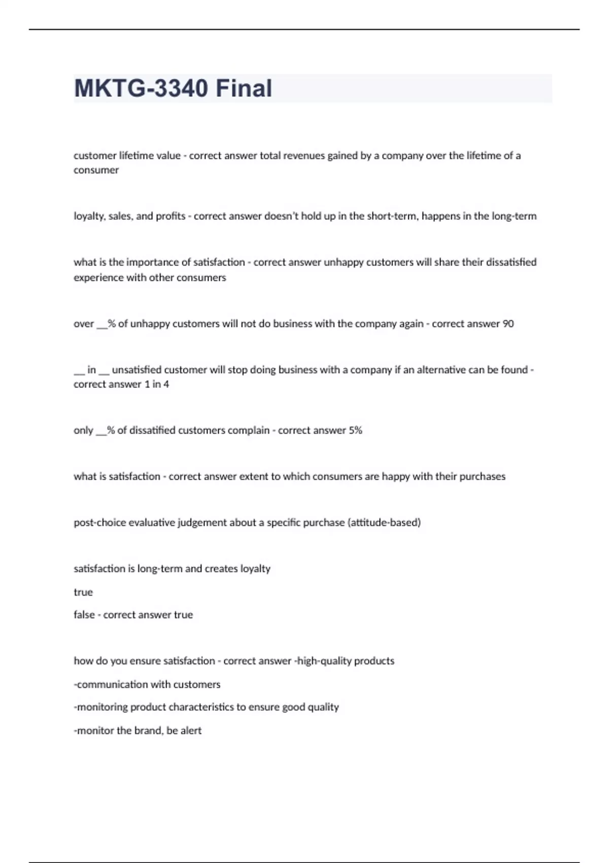 MKTG 3340 correctly answered graded A+ 2023/2024