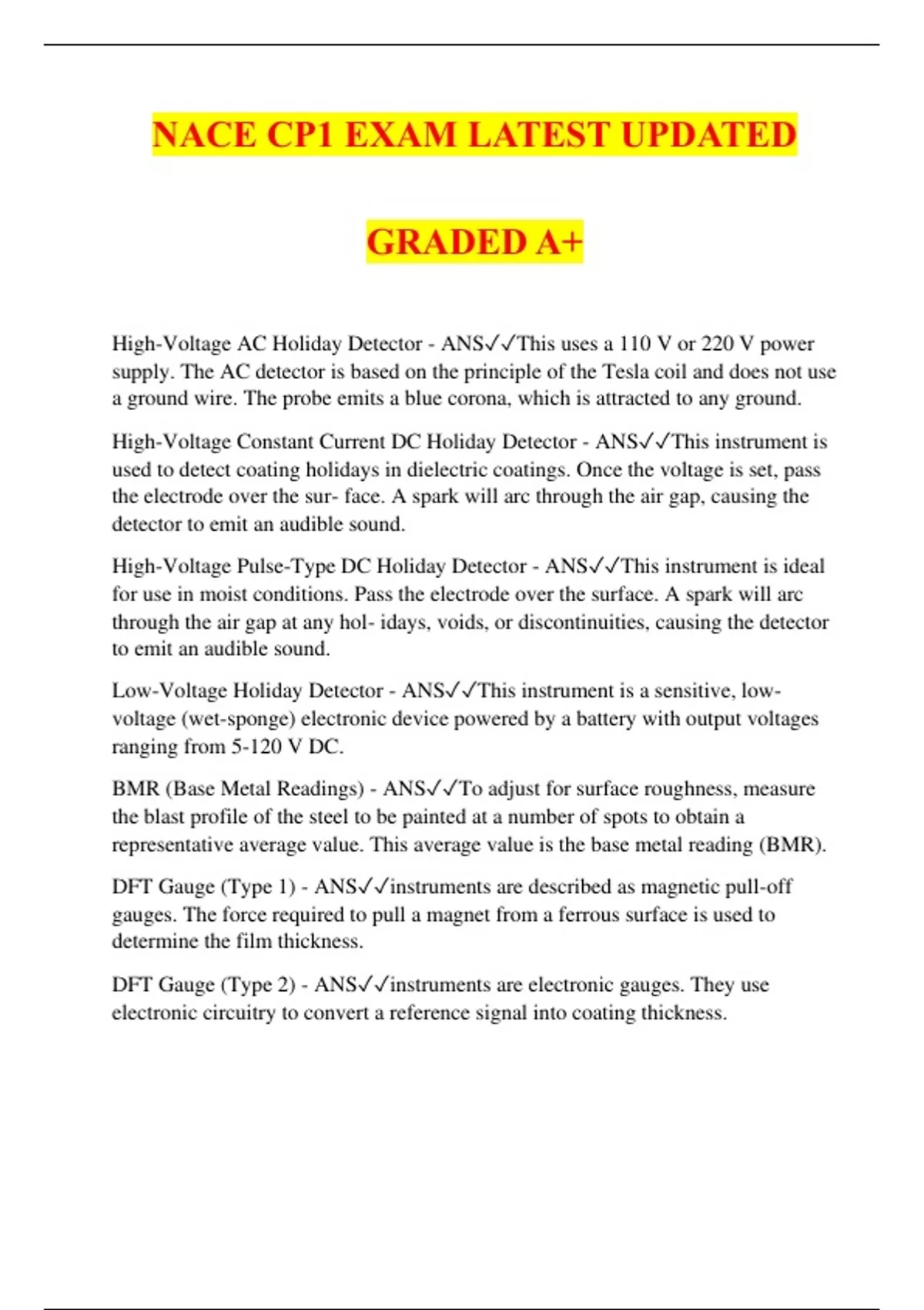 NACE CP1 EXAM LATEST UPDATED GRADED A+