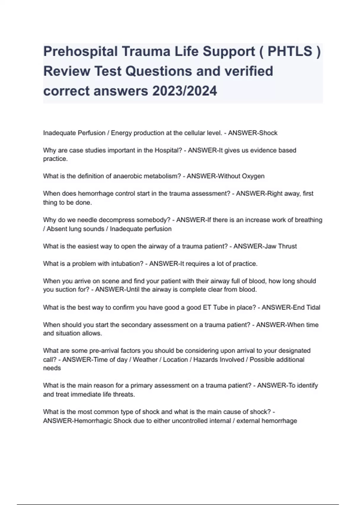 Prehospital Trauma Life Support ( PHTLS ) PACKAGE DEAL |Bundle contains Exams With 100% complete Complete Solutions