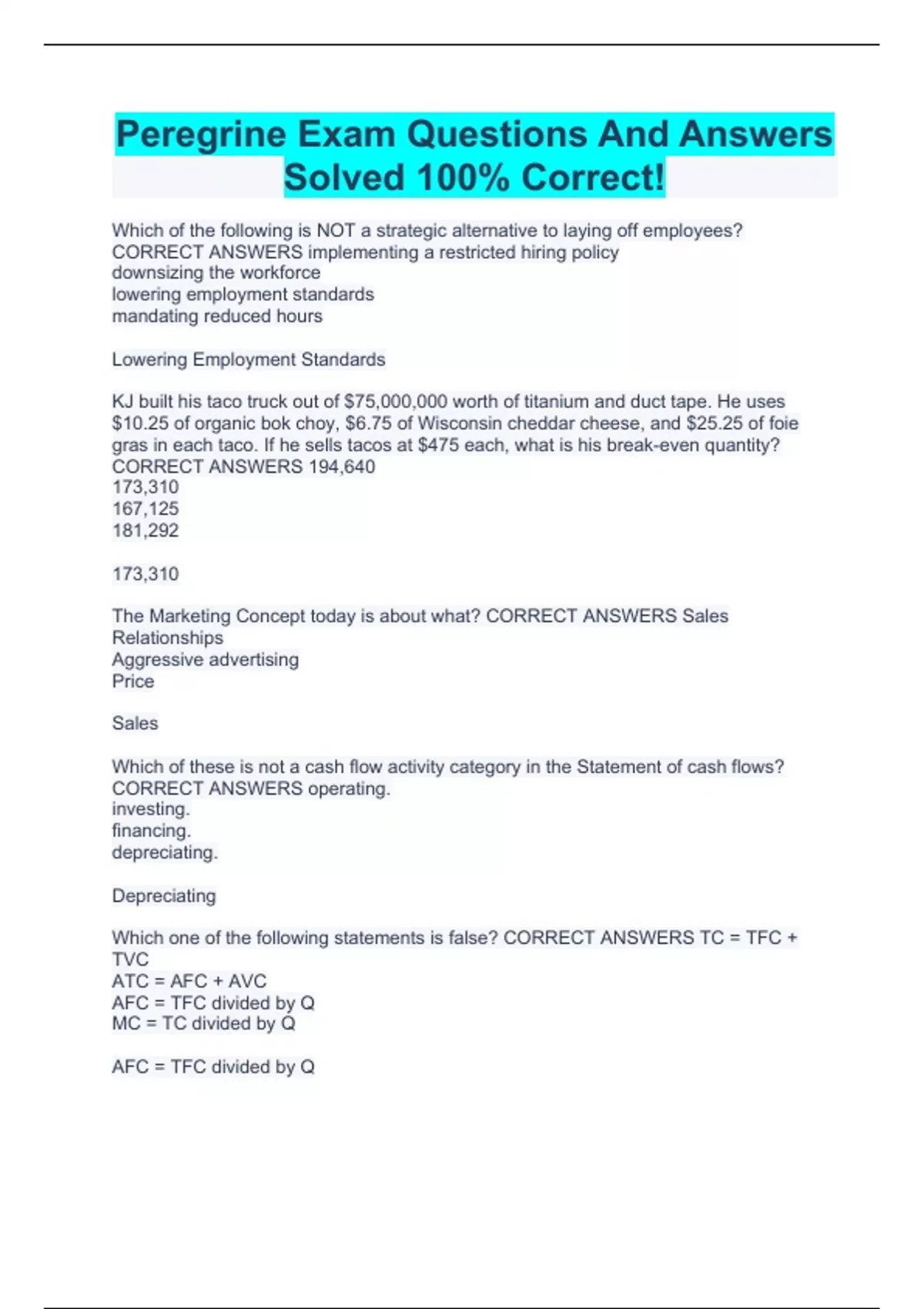 Peregrine Bundled Exam Questions And 100% Correct Answers |Guaranteed Success