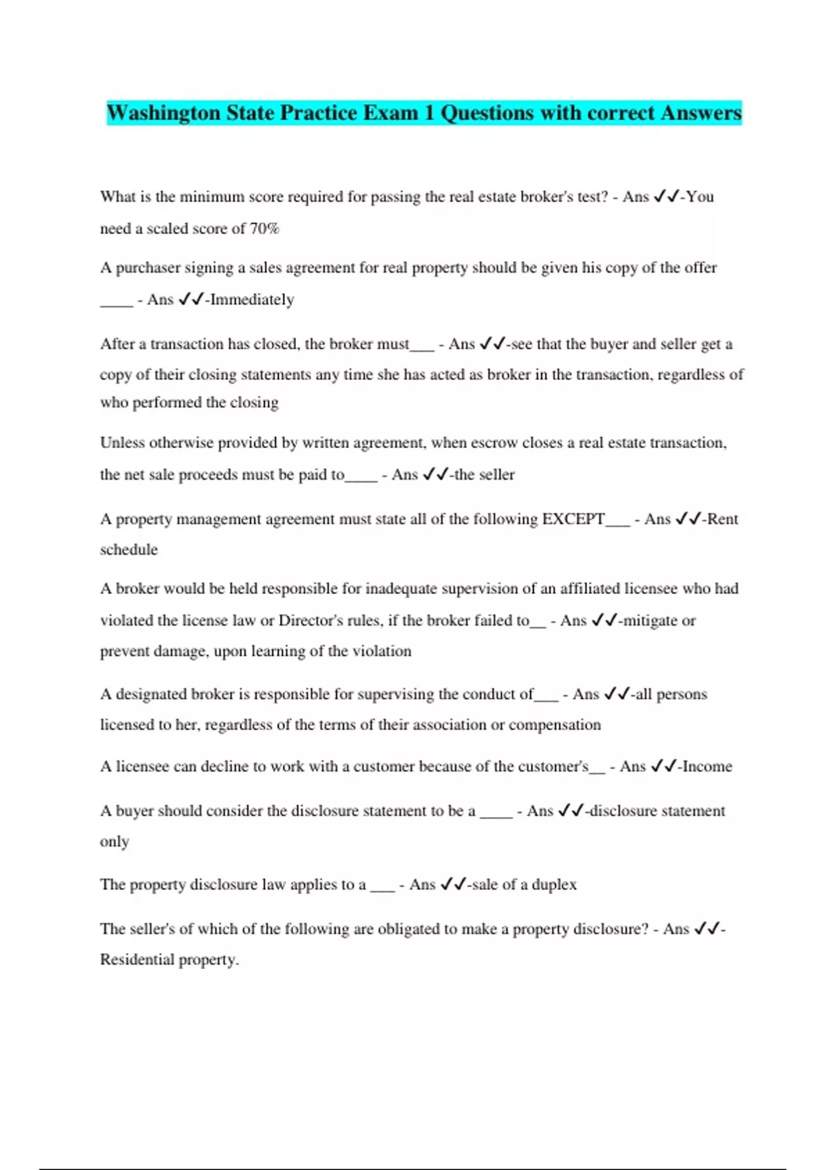 Washington Real Estate Test-solved